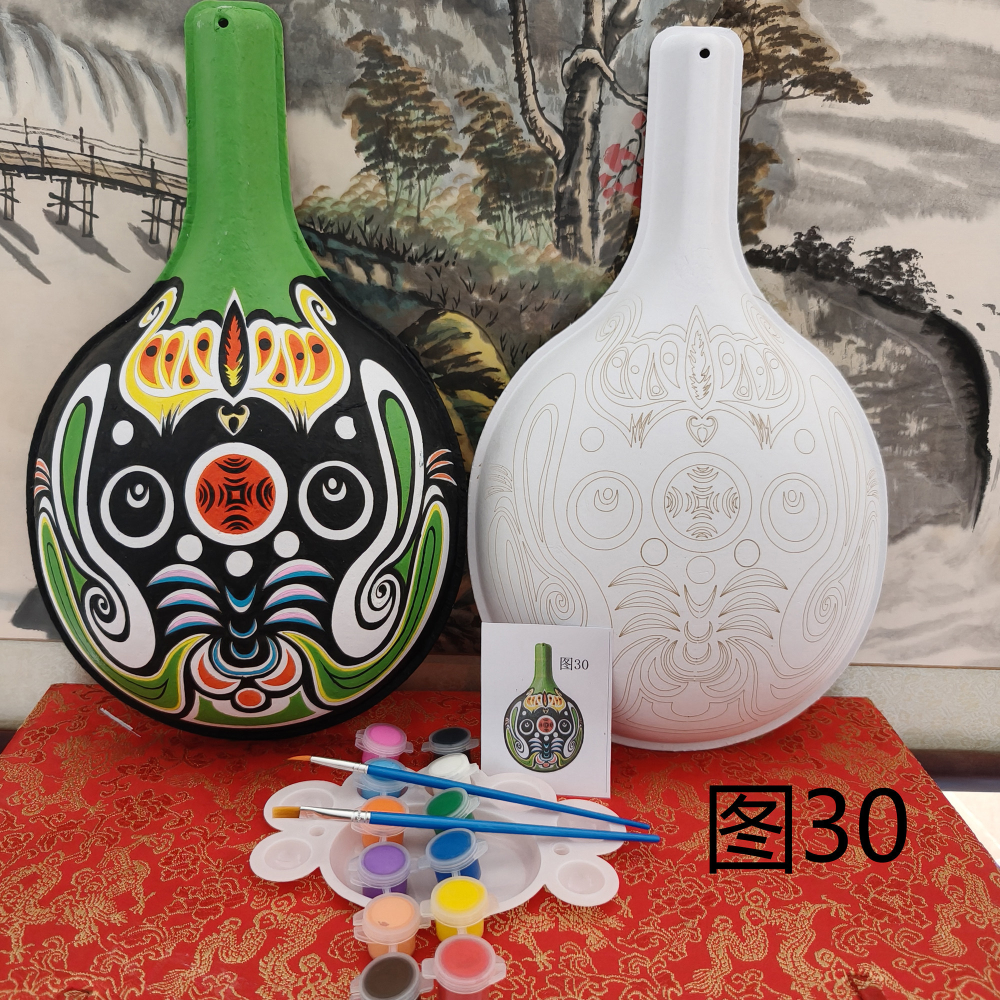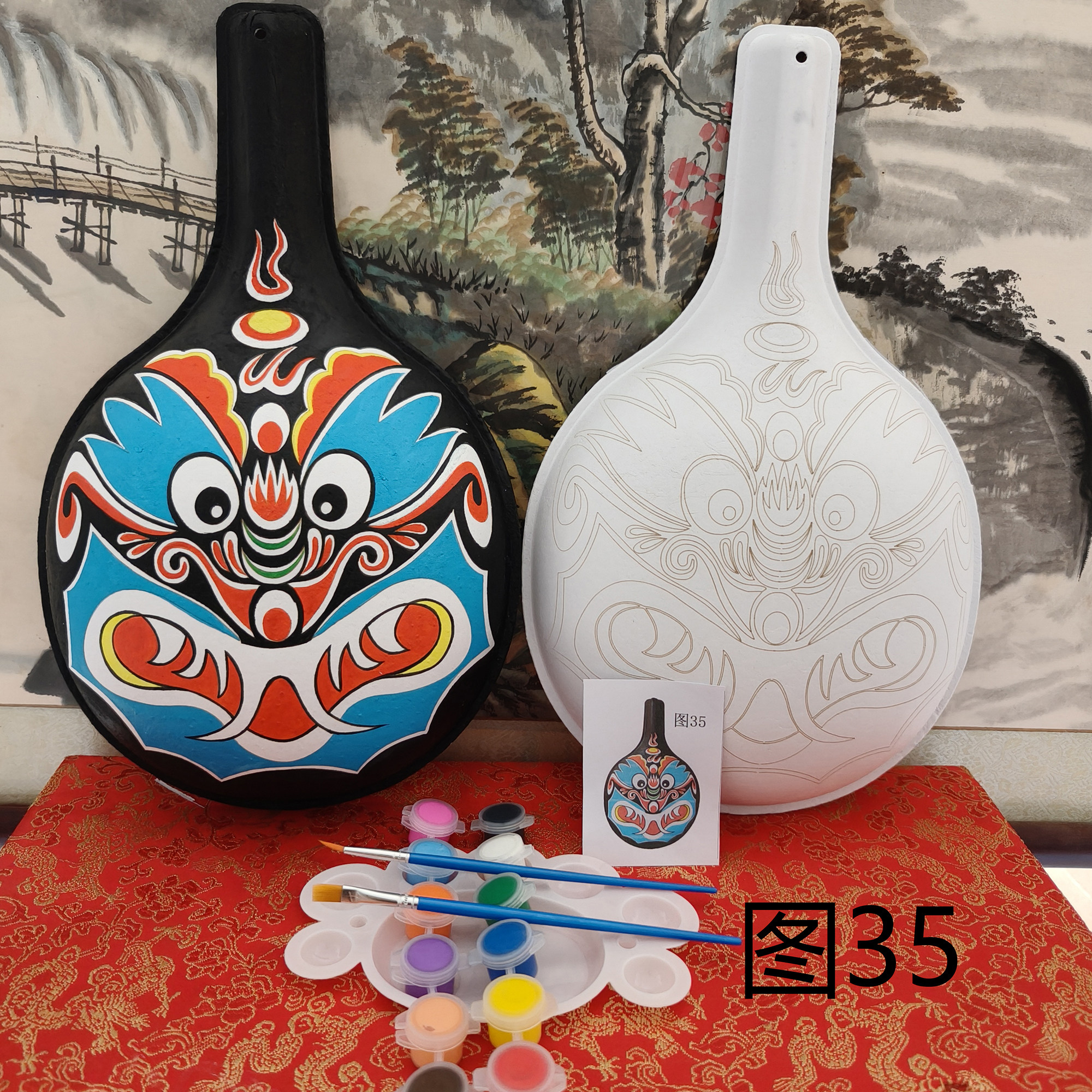 压痕脸谱面具 手绘创意幼儿园手工儿童DIY非遗京剧中国风白胚纸浆