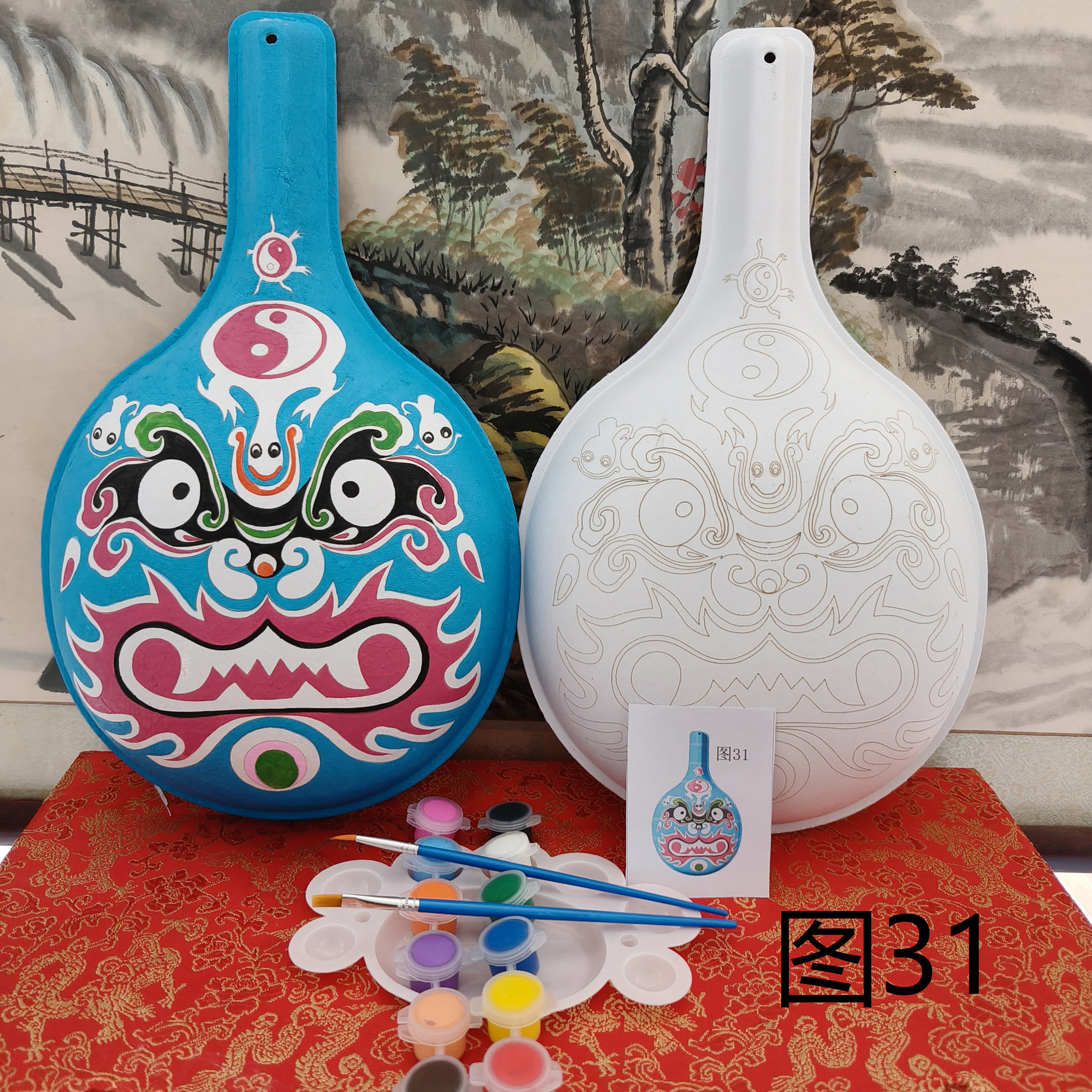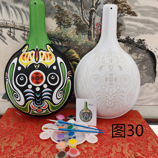 新款 非遗手工社火马勺脸谱diy带纹路白坯文创材料包 国潮多款
