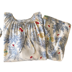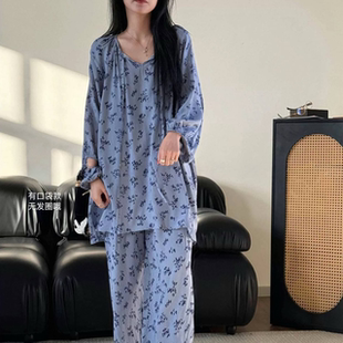 家居服棉绸春夏睡衣套装 可外穿长袖 国风高级感 宽松宅家套装