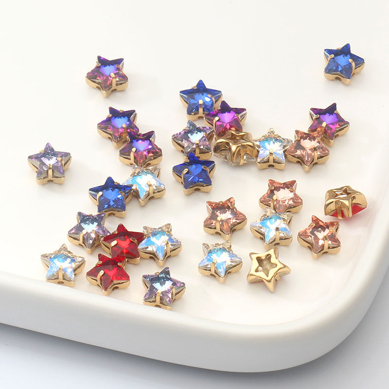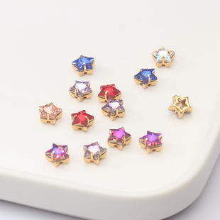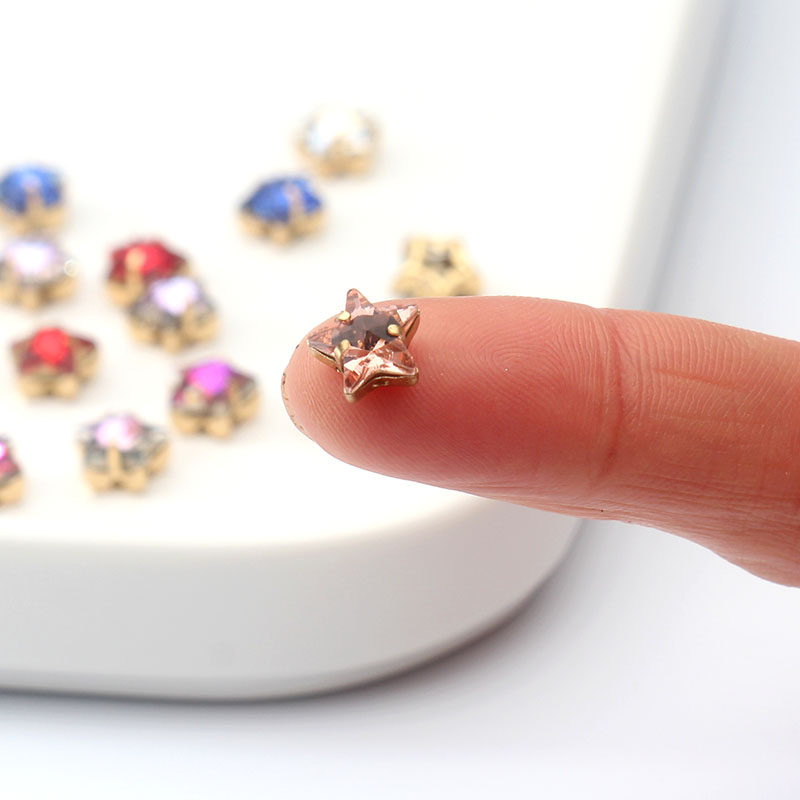 法式 手缝钻diy饰品配件 镂空星星爪钻 刺绣 8mm五角星金底钻