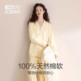 可外穿家居服套装 红豆女士睡衣带胸垫A类抗菌防螨纯棉女款 春夏季