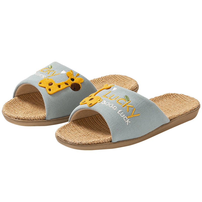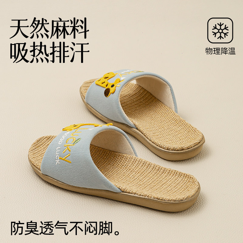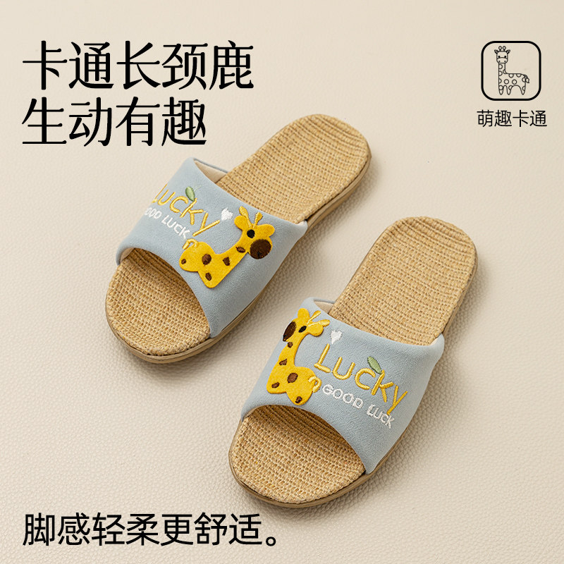 女童春秋室内吸汗防臭家居男孩四季 远港可爱儿童抗菌亚麻拖鞋 拖鞋