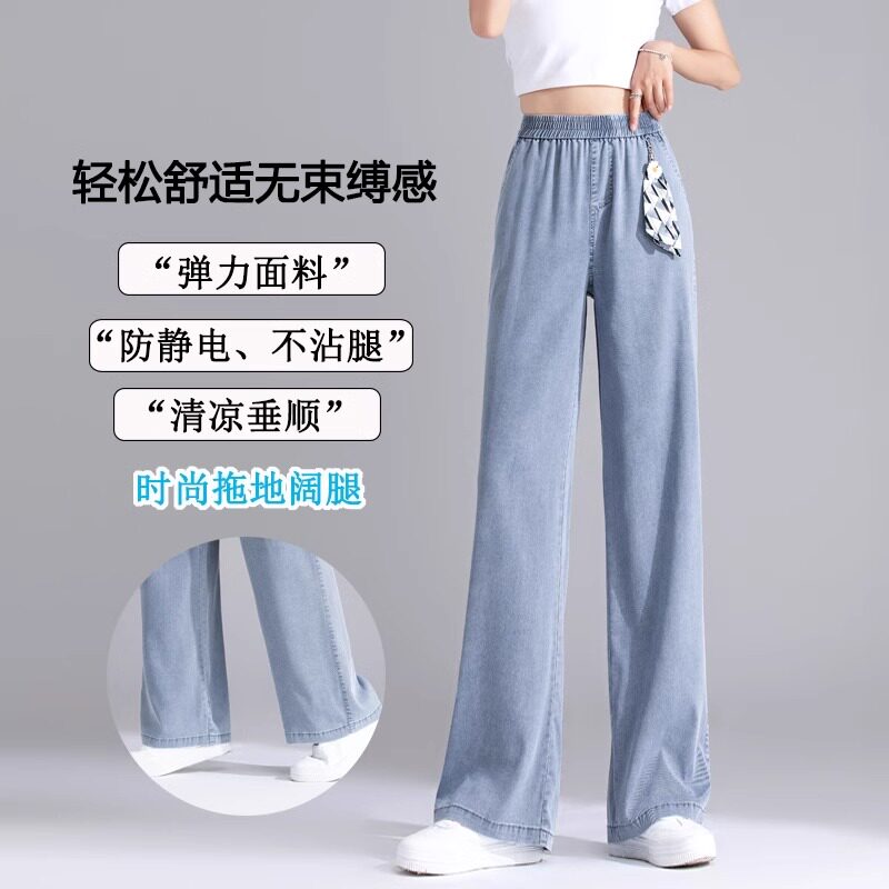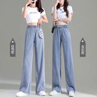 高腰显瘦休闲窄版 天丝牛仔裤 2025年春装 薄款 直筒冰丝阔腿 女夏季