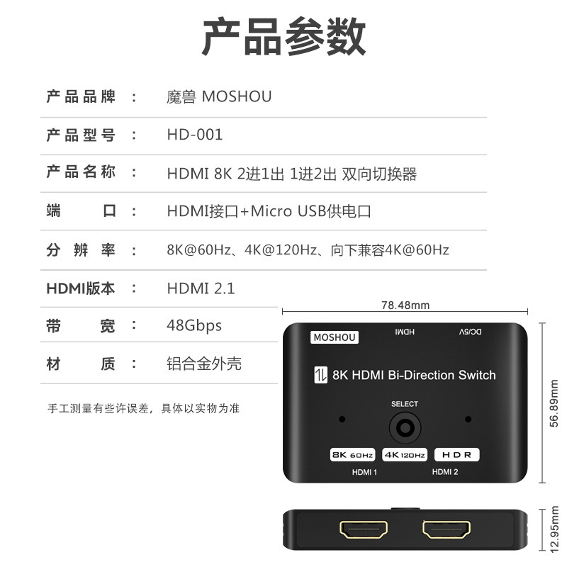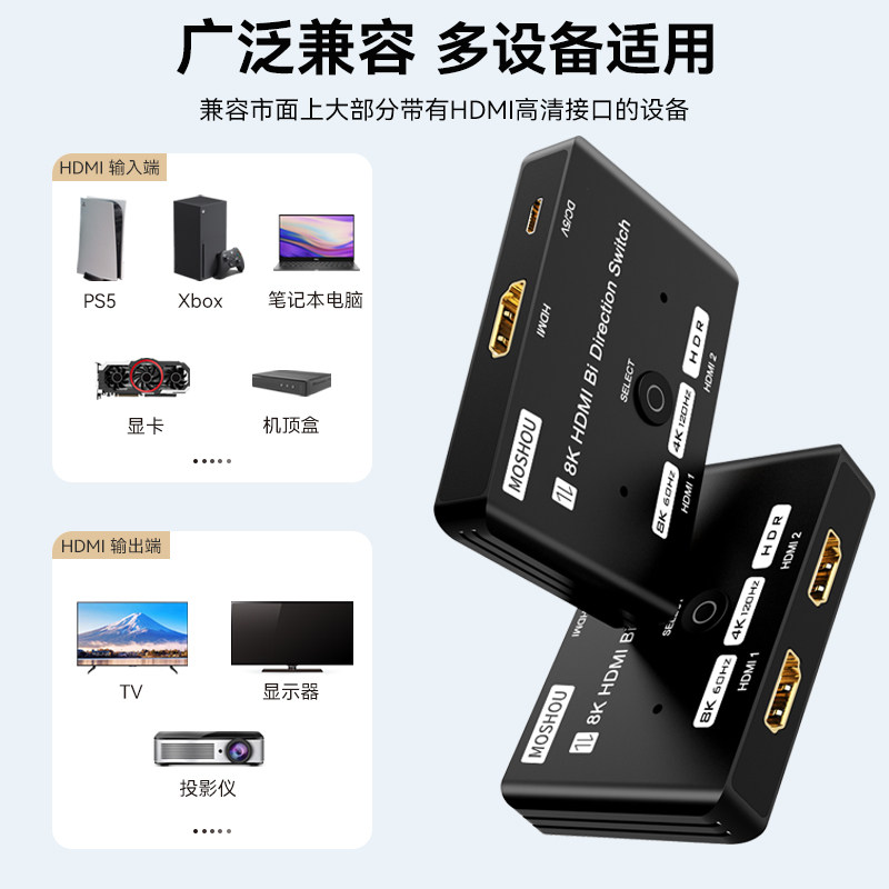 2.1版 2进1出 60Hz 120Hz 3进1出高清切换器分配器8K 魔兽HDMI