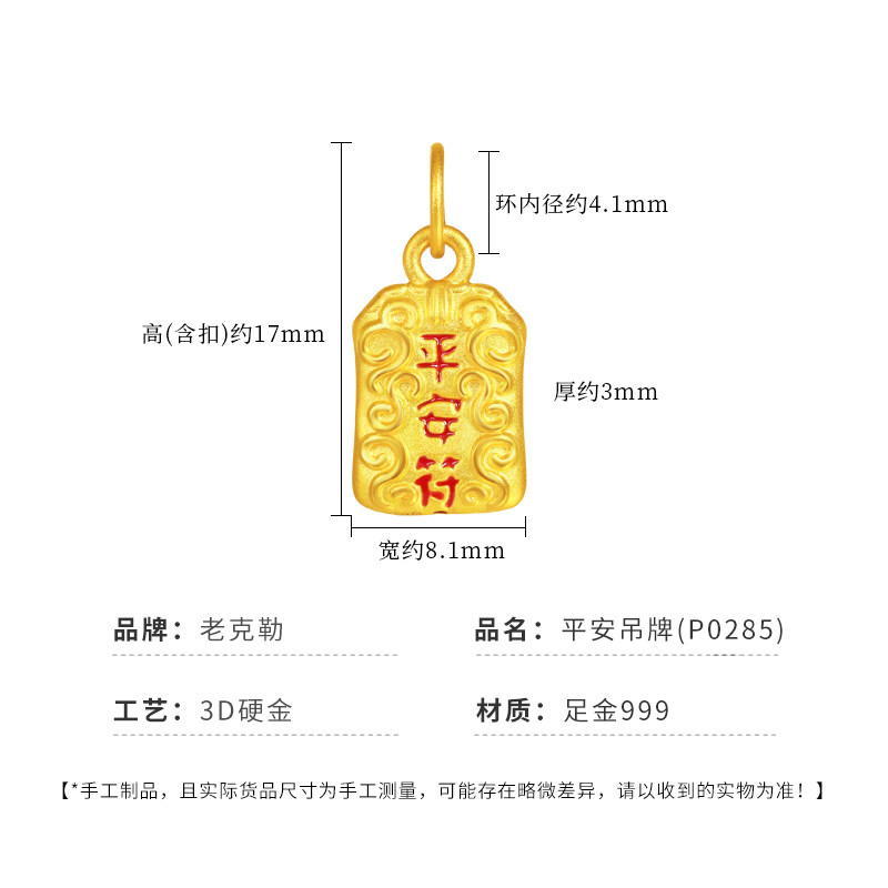 周六福黄金吊坠宝宝足金婴儿周岁坠子挂件定价送小孩抓周礼物官方
