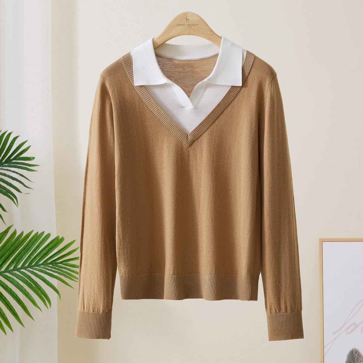 春竹2026早春假两件高级感洋气含桑蚕丝上衣女针织衫 年终清仓