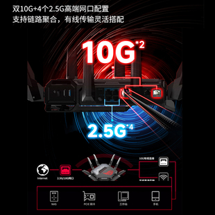 4个2.5G网口AiMesh组网GT WiFi7路由器三频13000M双10G 华硕ROG八爪鱼7 BE96大户型电竞路由器 WIFI7新品