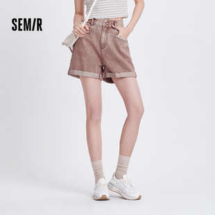 凉感宽松翻边短裤 潮流做旧2025夏季 粉色潮流洗水 女时尚 森马牛仔裤