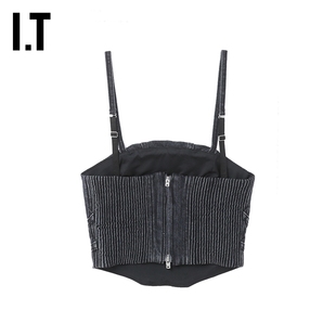 辣妹合身露脐吊带衫 时尚 牛仔吊带上衣新款 WDF007XM AMIRI女装