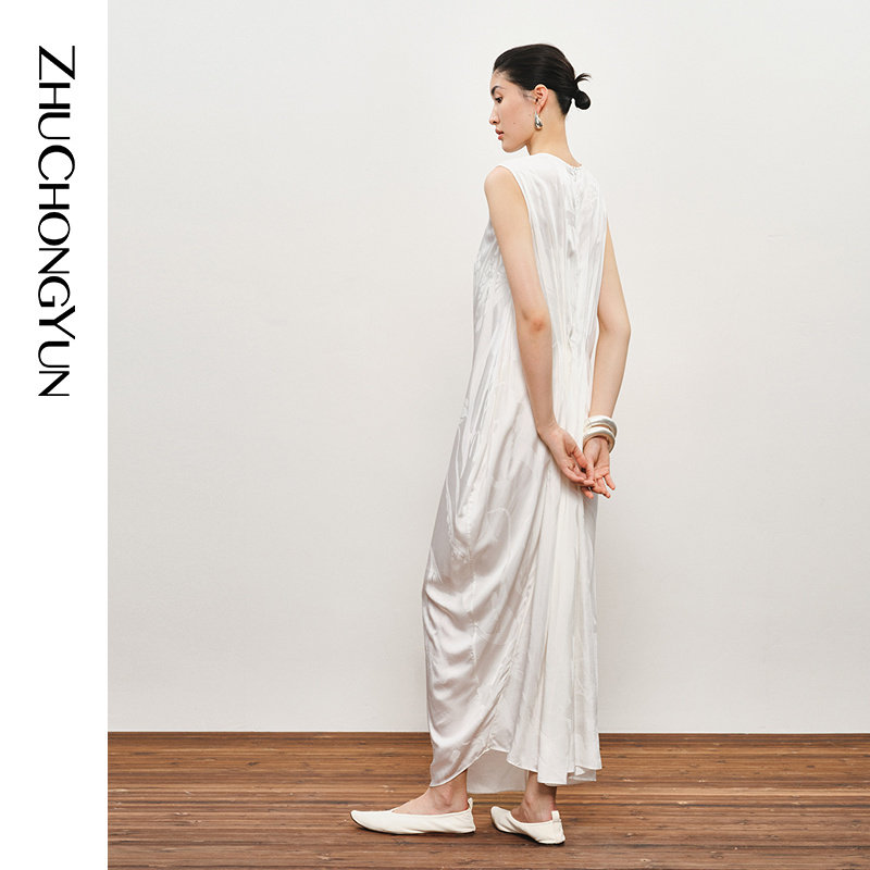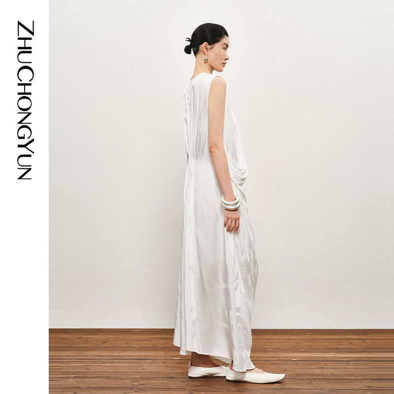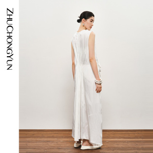 白色暗纹肌理褶皱无袖 ZHUCHONGYUN夏季 连衣裙 夏木之梦
