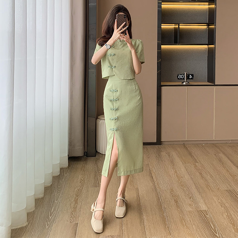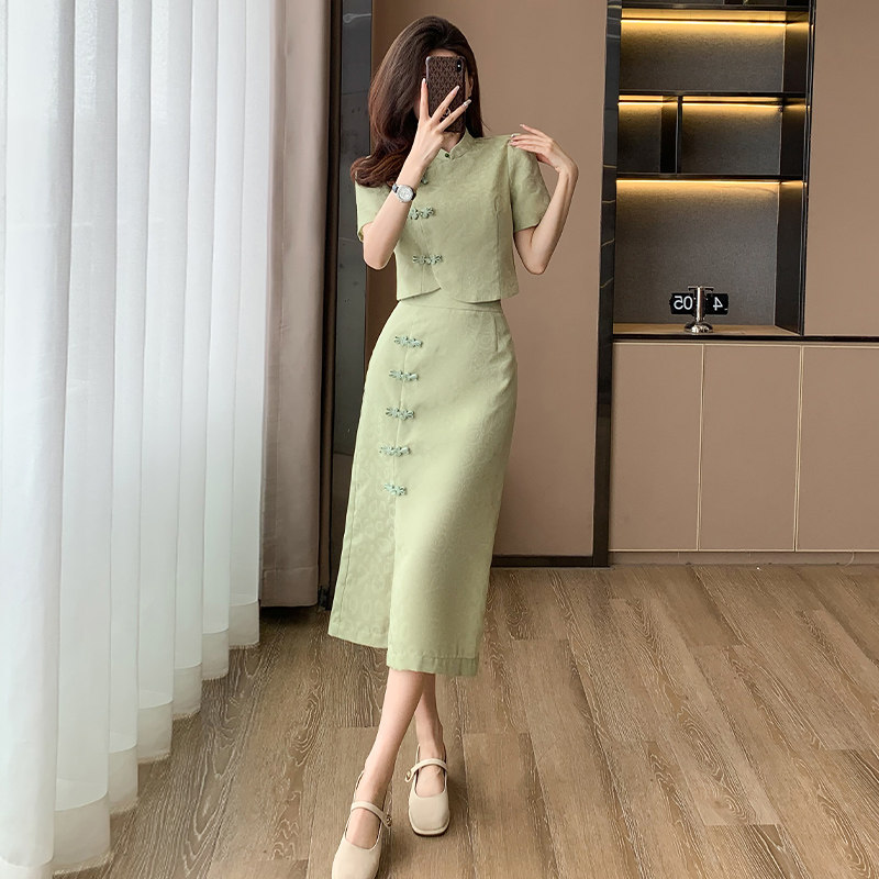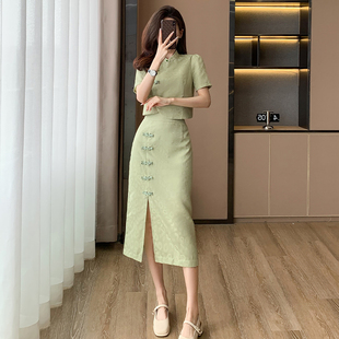 修身 气质显瘦法式 开叉绿色轻熟风女神范两件套裙子女 夏季 2025新款