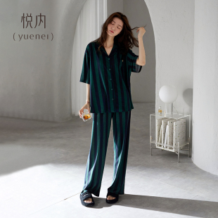 长裤 莫代尔短袖 家居服时尚 新款 冰丝凉感条纹 悦内睡衣女款 夏款 夏季