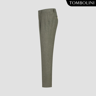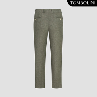 男 轻薄休闲九分裤 TOMBOLINI秋季 丛林绿色直筒西裤 纯亚麻长裤