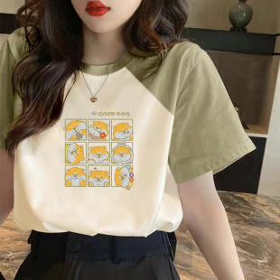 宽松百搭小众独特上衣ins潮 新款 复古果绿色纯棉短袖 T恤女2025夏季