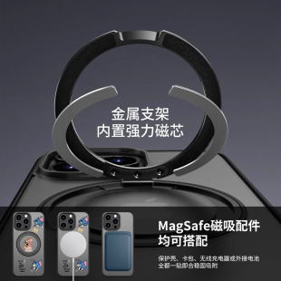 适用于适用iPhone16e磁吸手机壳12plus新款 14max自带360旋转支架13防摔11支点保护套猫和老鼠15pro创意17air