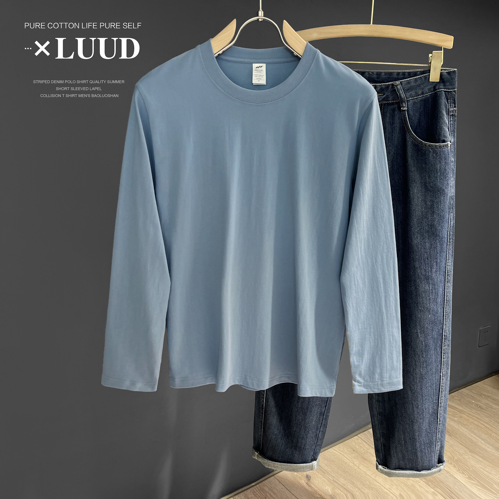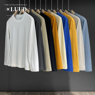 男生简约通勤百搭纯色圆领上衣春 T恤衫 LUUD 100纯棉舒适外穿长袖