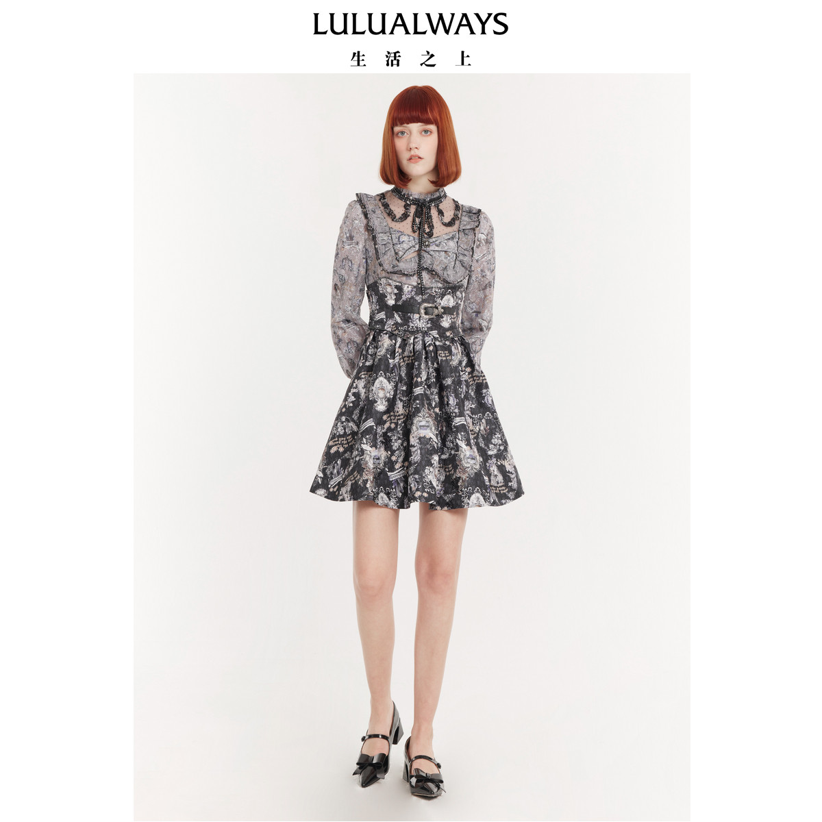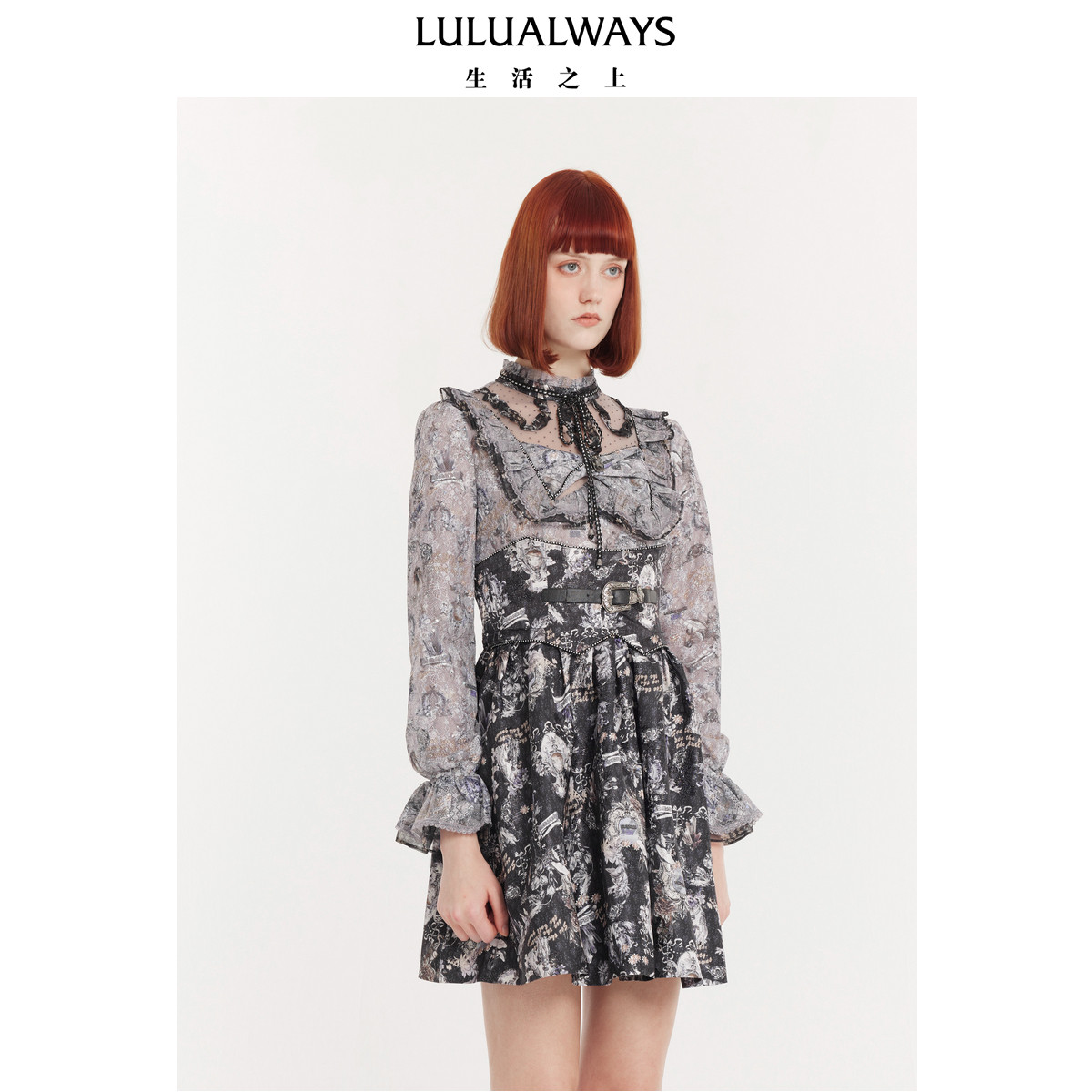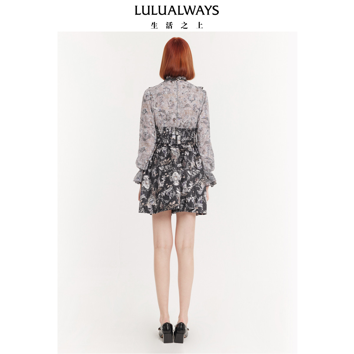 饰短款 优雅印花腰带装 连衣裙 商场同款 LULUALWAYS