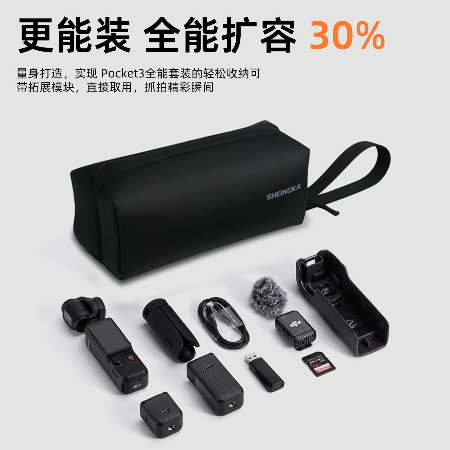 sheingka适用大疆Pocket3收纳包运动相机包大疆配件包手持收纳箱便携包手提口袋云台相机滤镜防水防刮保护盖