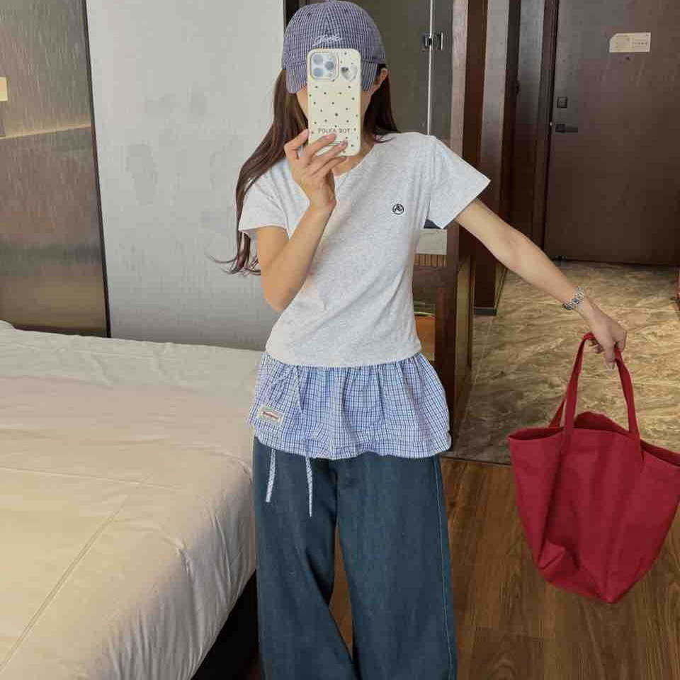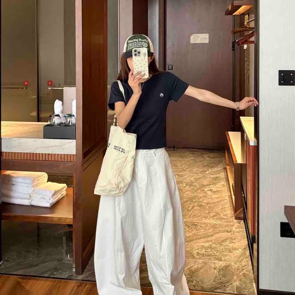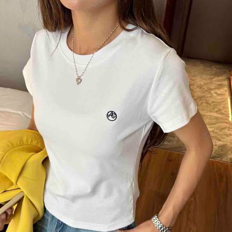 纯色正肩刺绣t恤上衣女韩版 短袖 修身 薄款 显瘦设计感短版 2026新品