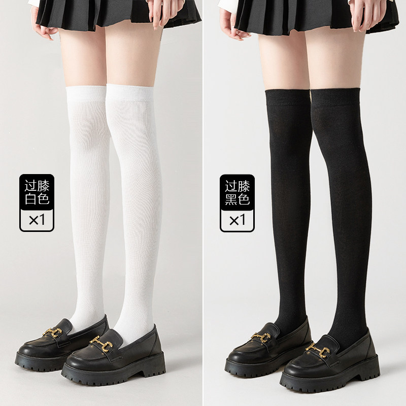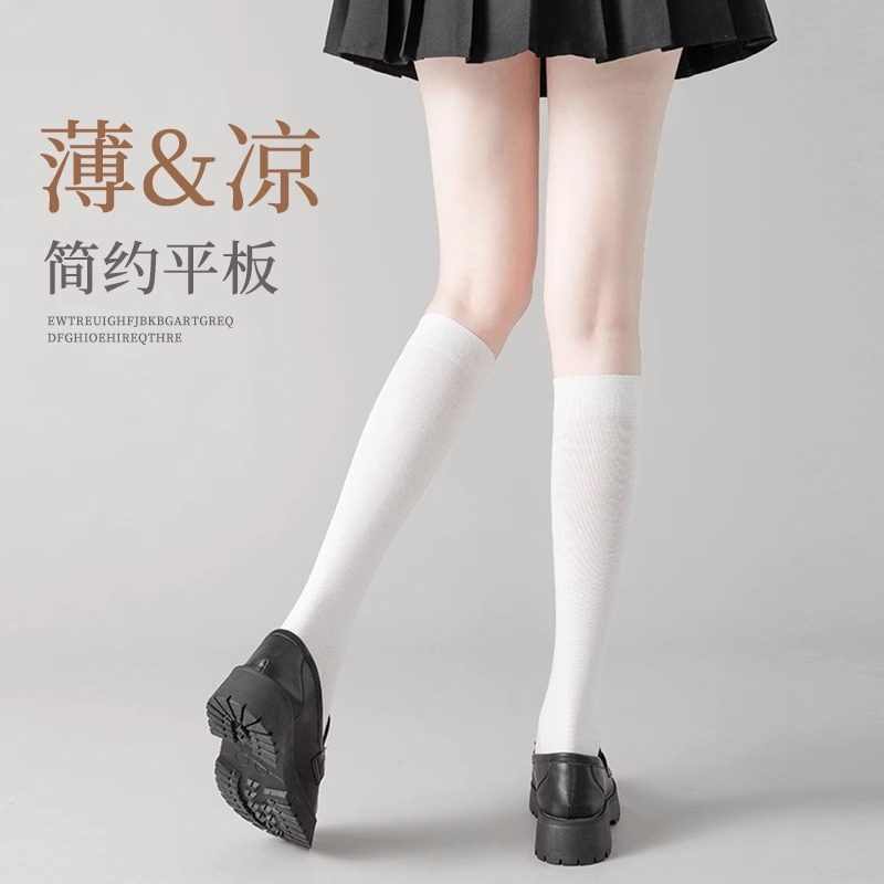 抵达一楼白丝过膝袜春夏薄款 日系白色jk大腿袜天鹅绒长筒袜女防滑