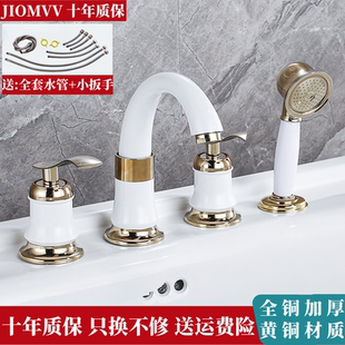 分体入墙式 抽拉洗脸盆水龙头冷热四件套三孔面盆洗手盆台池浴室柜