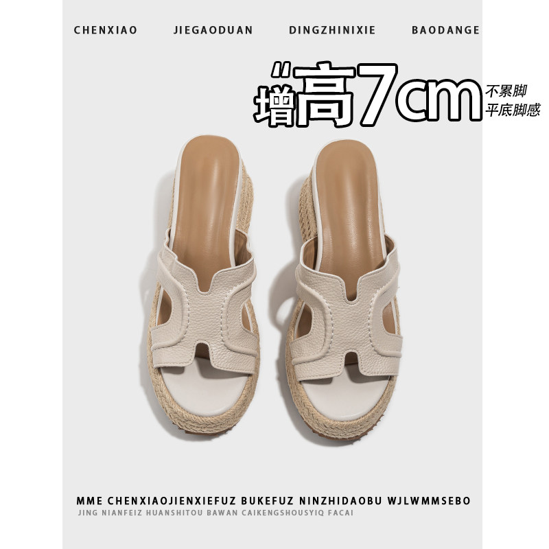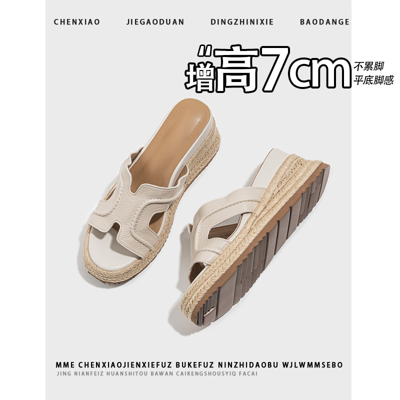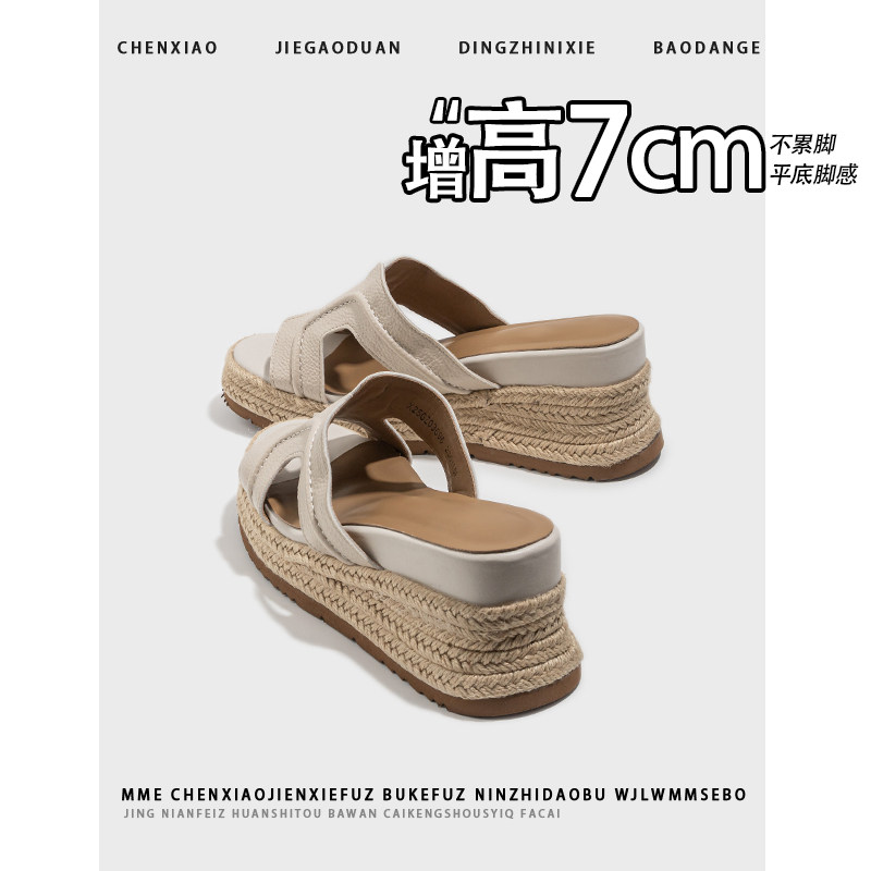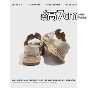女外穿凉鞋 不累脚 增高7CM坡跟凉拖鞋 秋季 女 厚底复古草编凉拖鞋
