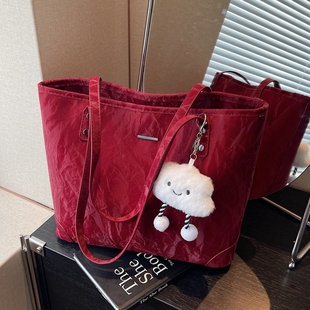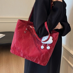 红色大包包女士2025新款 大容量通勤单肩托特包结婚新娘包平时可用