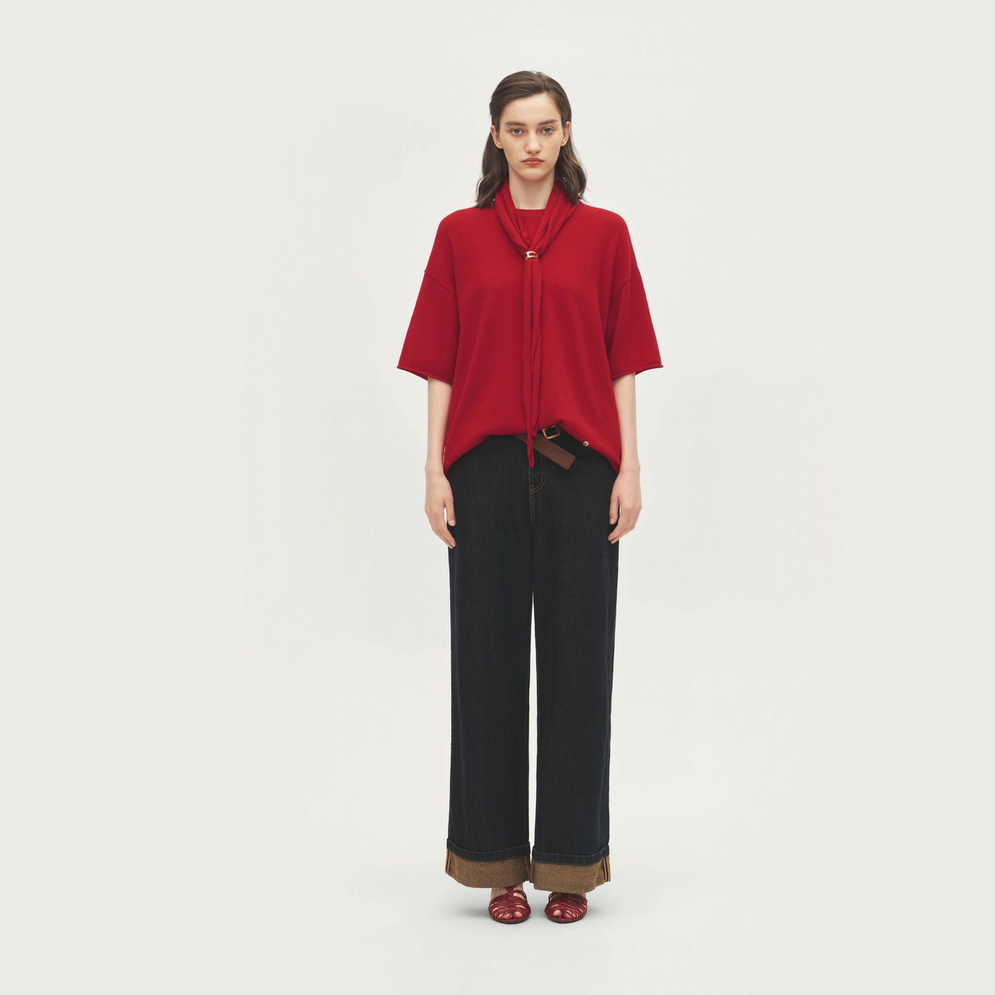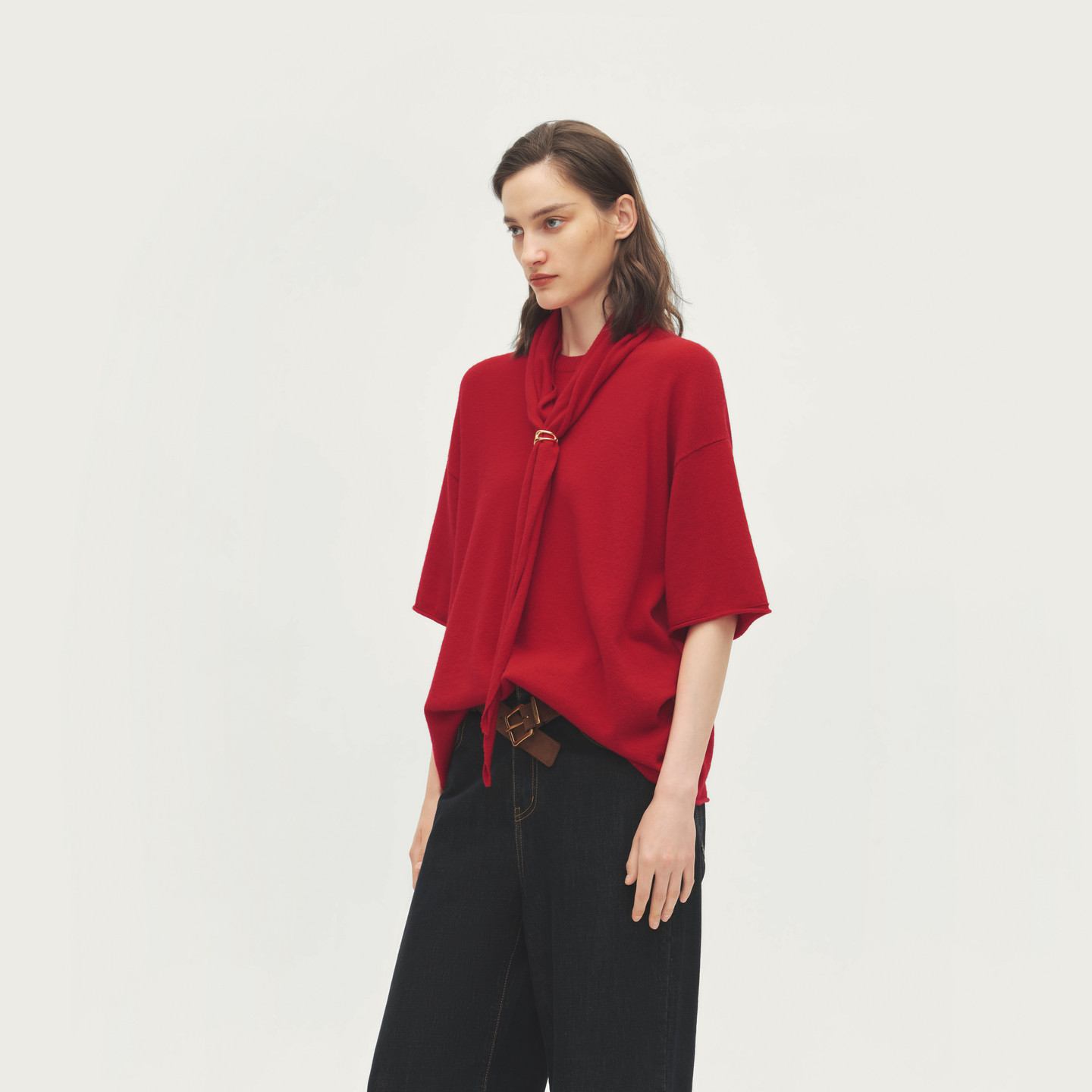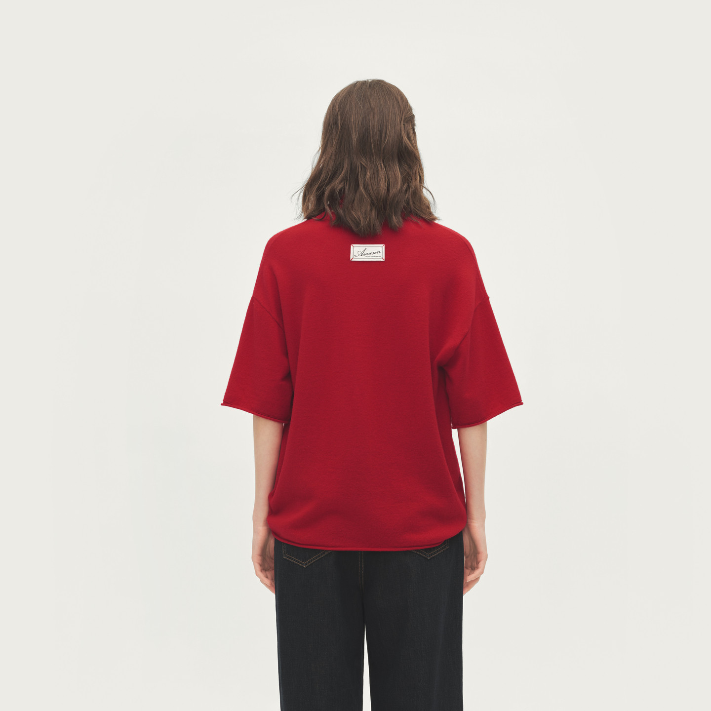 AVVENN设计师款 AL70601651 柔软透气舒适减龄红针织短袖