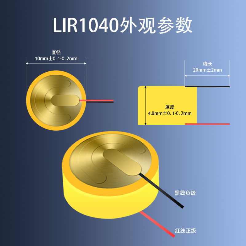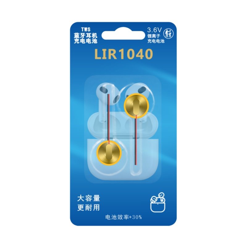 LIR1040TWS蓝牙耳机3.6V 钢壳锂离子可充电带引线电池 35mAh纽扣式