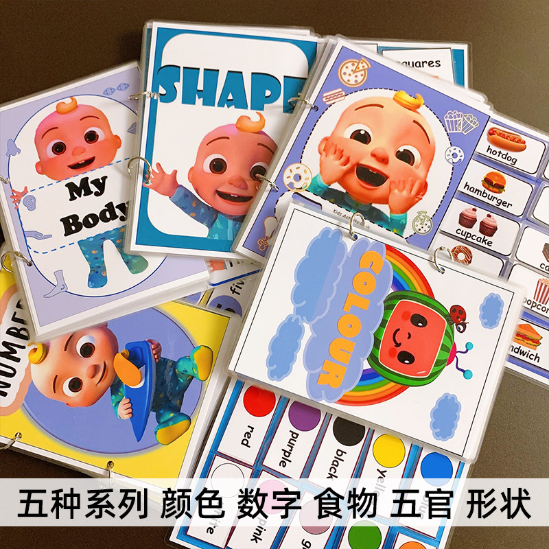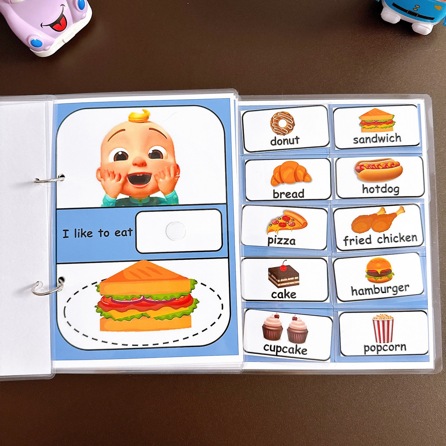 Food食物JJ宝贝形状认知英文早教教具手工diy粘贴cocomelon安静书