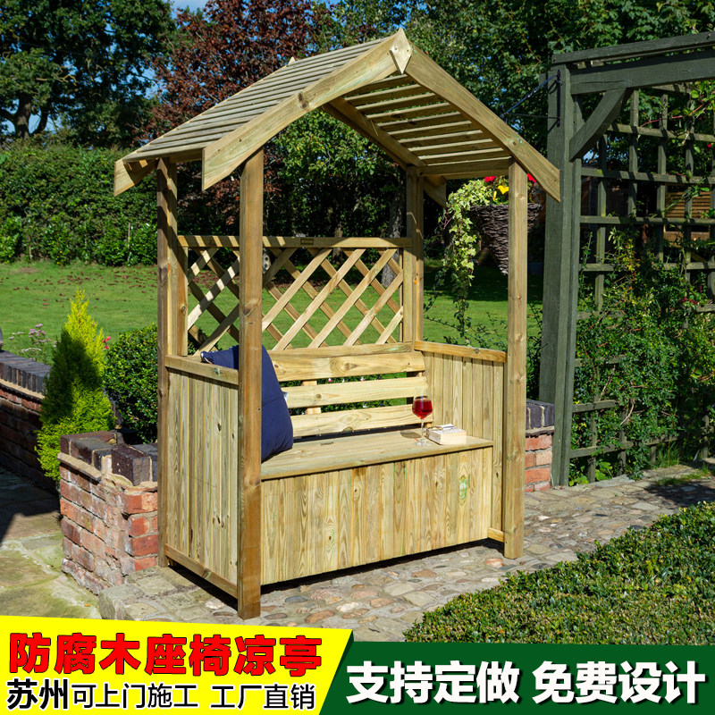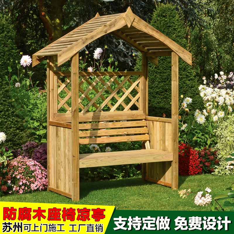 户外防腐木座椅凉亭花架拱门休闲椅子亭子防腐木坐凳靠背椅小木屋