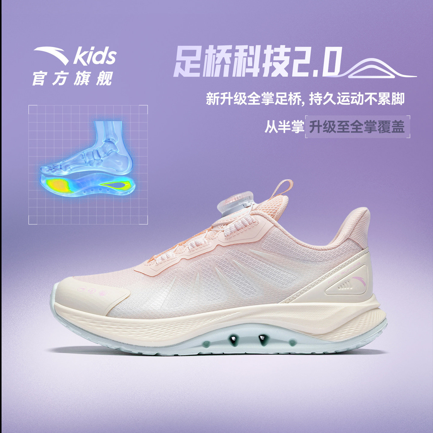 专业透气运动鞋 女童鞋 2026春夏新款 安踏儿童足桥科技2.0足弓跑鞋