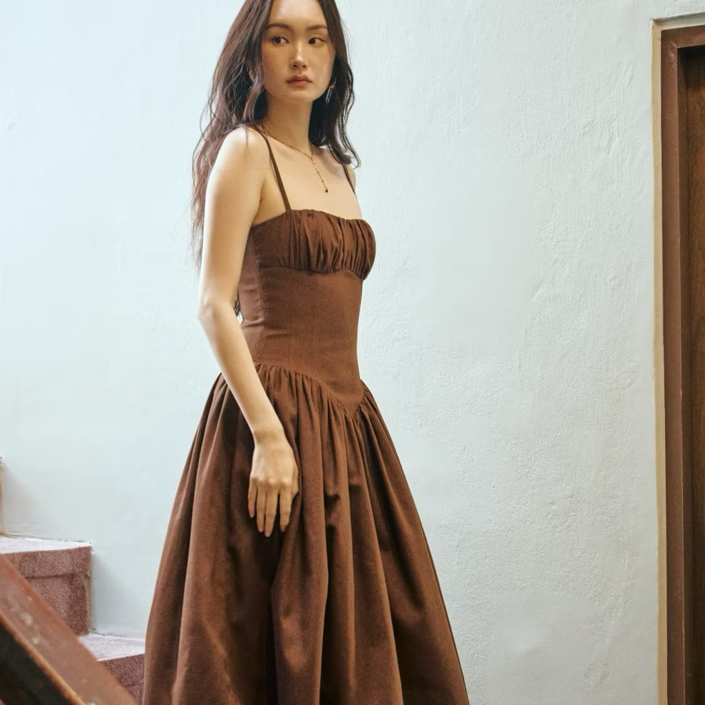 泰国小众品牌 摩卡棕色吊带连衣裙 heartweavers