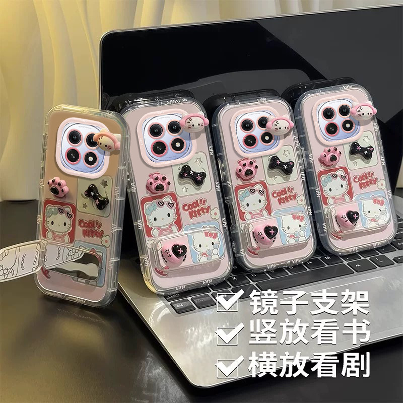 93s全包镜头A72可爱A55高级感A52凯蒂猫3X活力版 A6手机壳A97新款 1镜面支架卡通36女2pro 活力版 适用OPPOA5pro