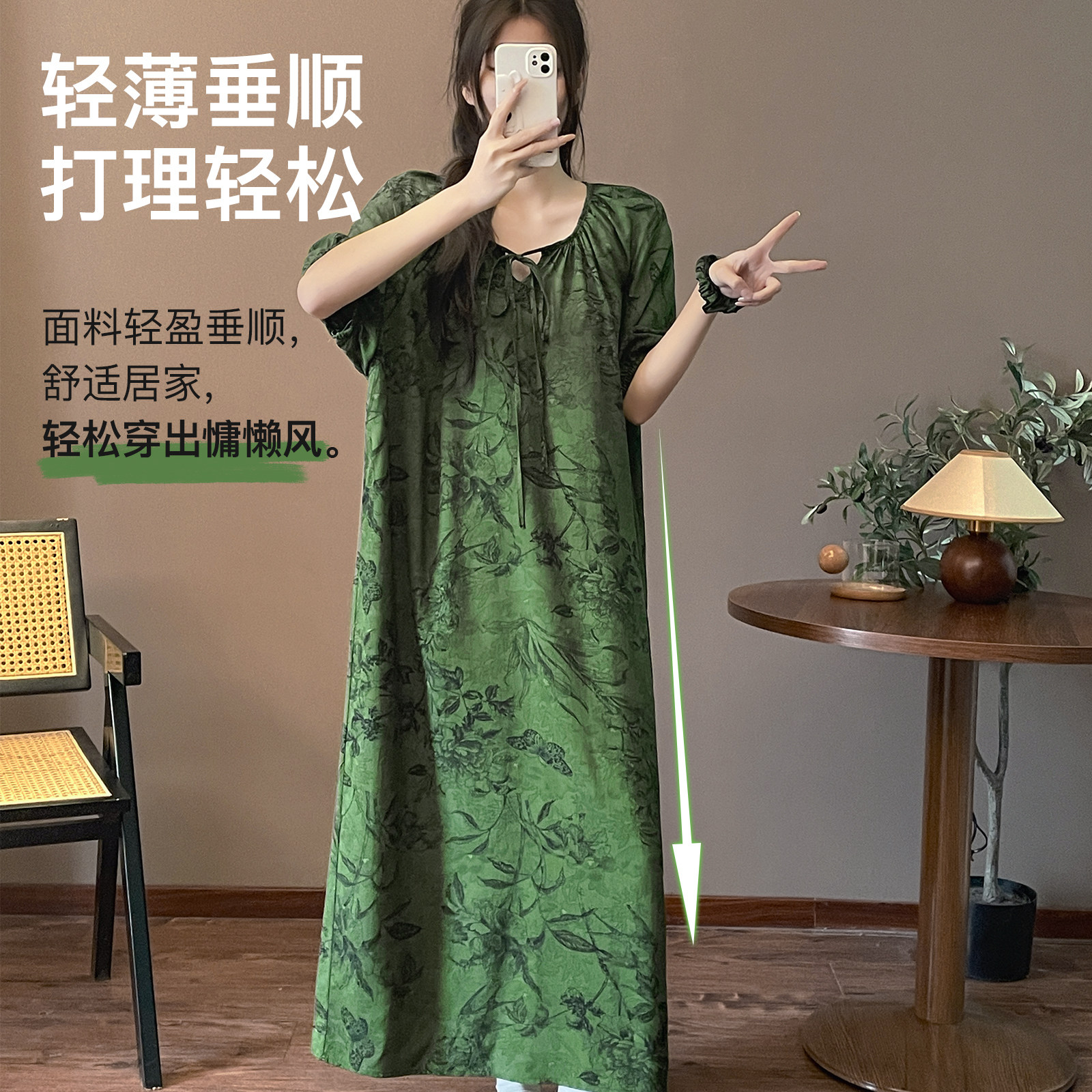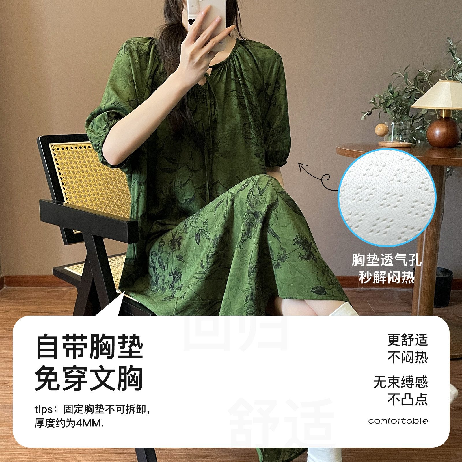 夏天薄款 棉绸睡裙女款 2026新款 女士睡衣一体带胸垫家居服女款 夏季