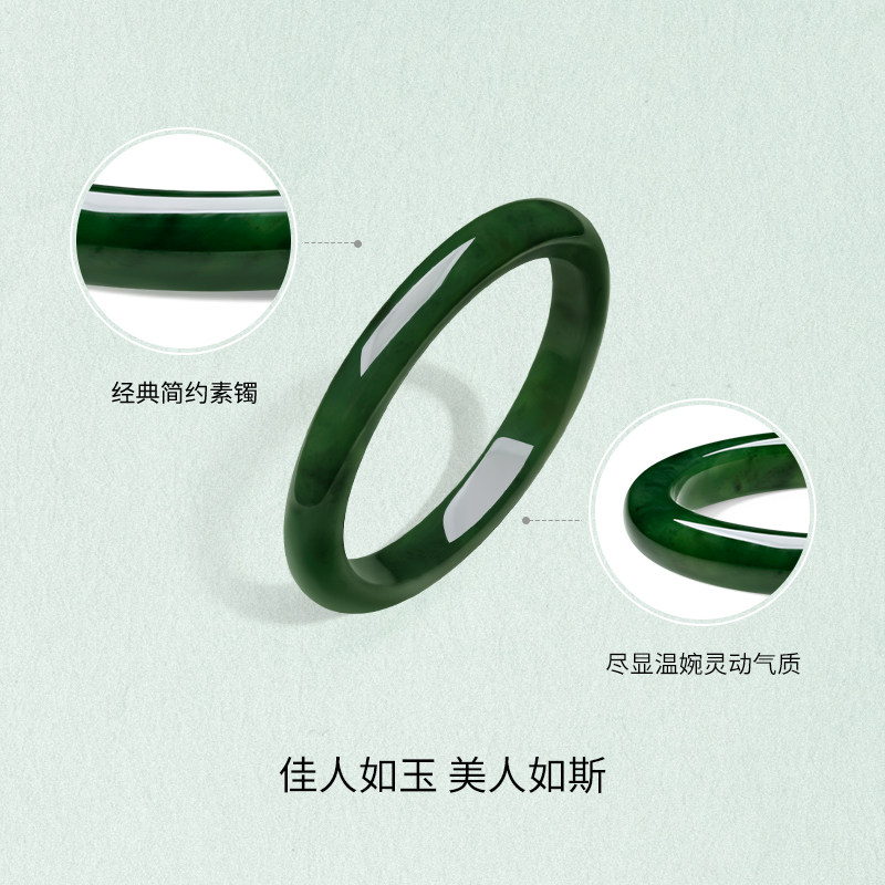 周六福和田玉手镯女显白碧玉平安镯手饰温婉美玉镯玉石新年礼物
