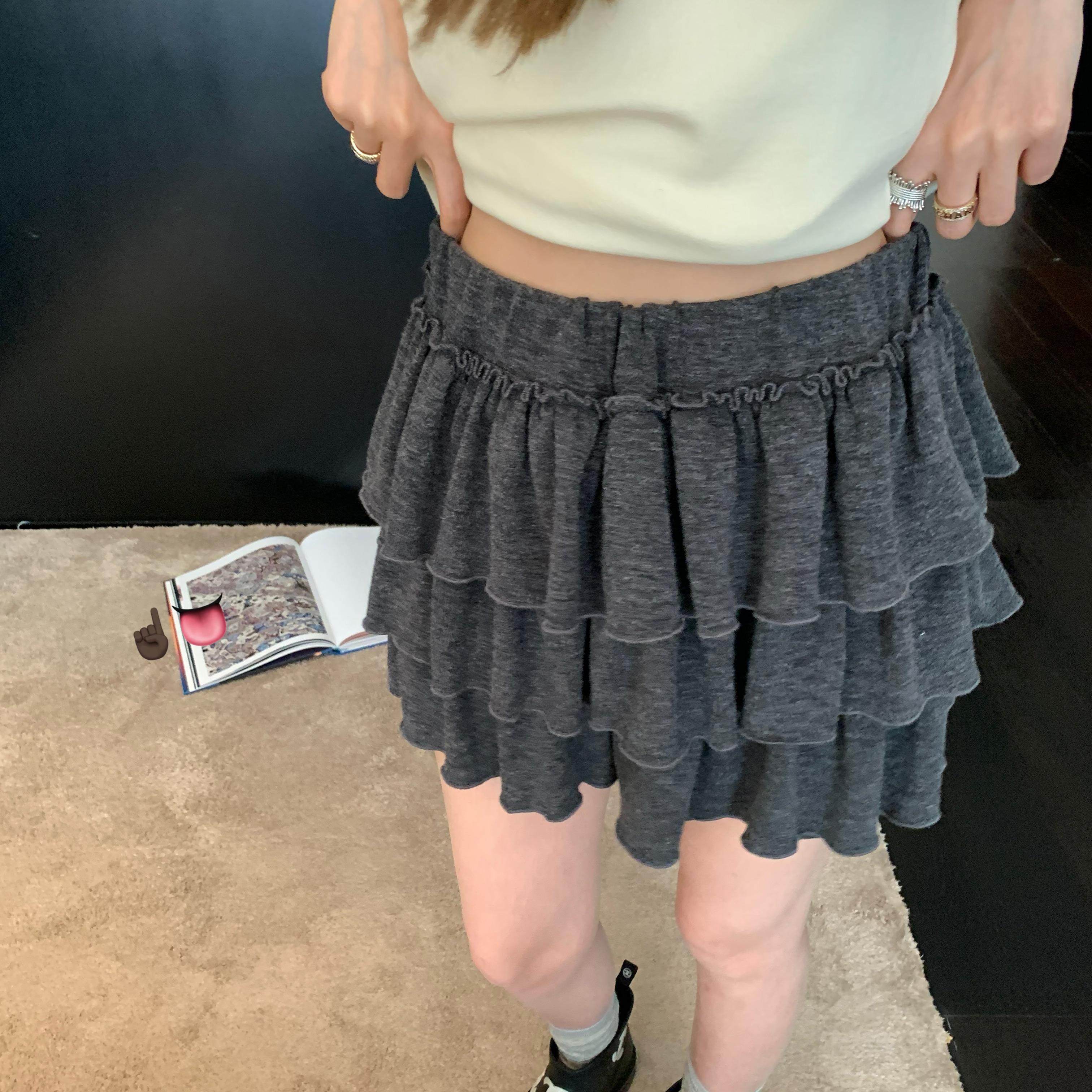 花边松紧腰百搭韩系休闲半身裙女 两色蛋糕裙裤 aaaaxbbb 歌弗西斯