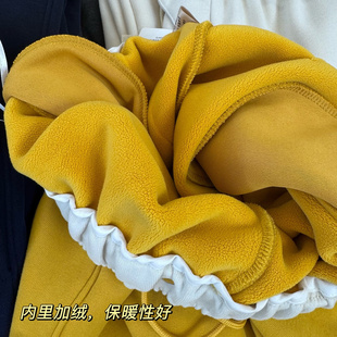 橘子树在哪儿复古加绒休闲裤 女秋冬慵懒风保暖显瘦百搭松紧腰卫裤