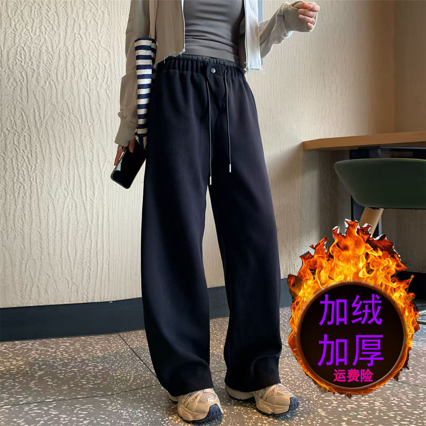 束脚宽松加绒加厚卫裤 显瘦运动裤 女2025冬季 松紧腰韩版 新款 此外