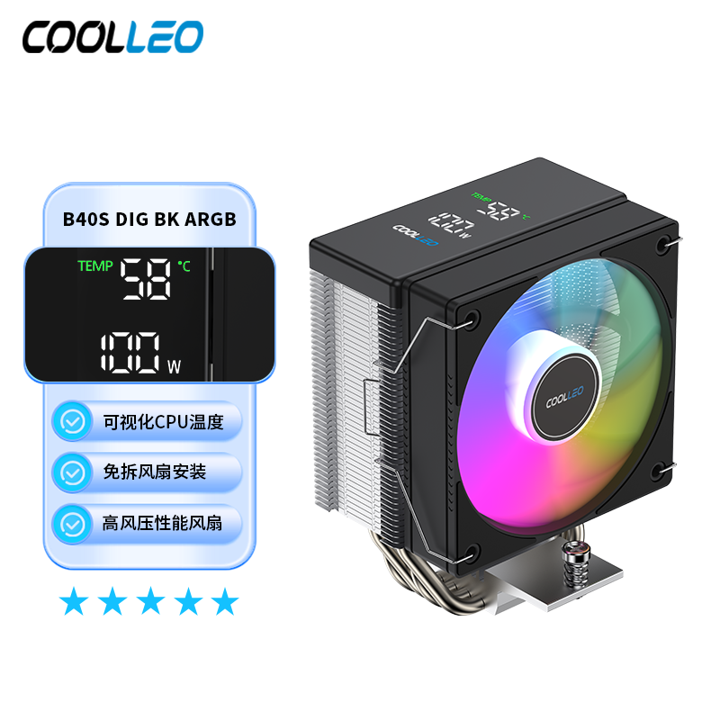 酷里奥倚天B40S 手提小机箱利器4铜管 DIG数显散热器静音风冷台式
