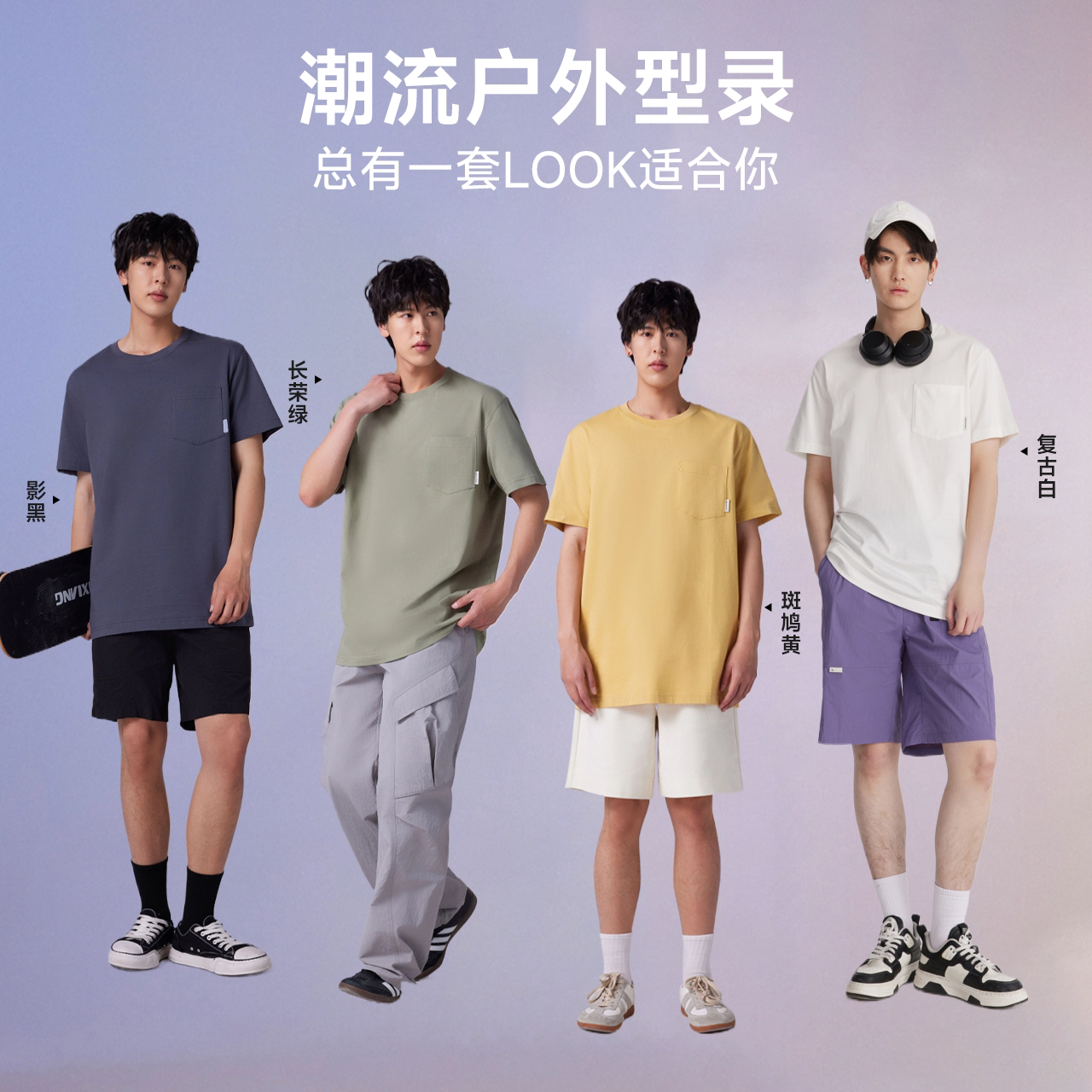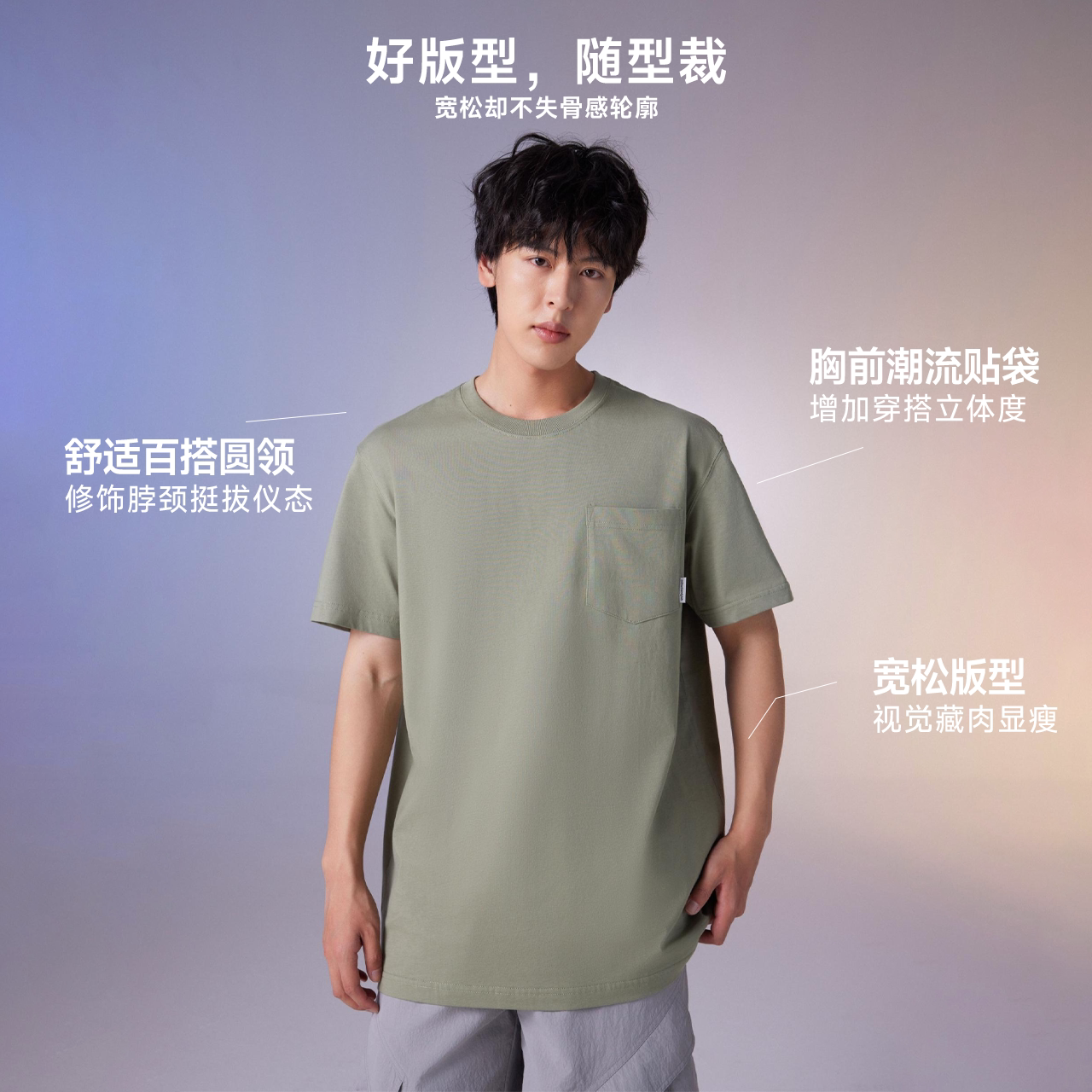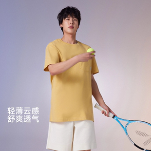 上衣 百搭简约纯色舒适质感针织短袖 美特斯邦威纯棉T恤男夏季 新款