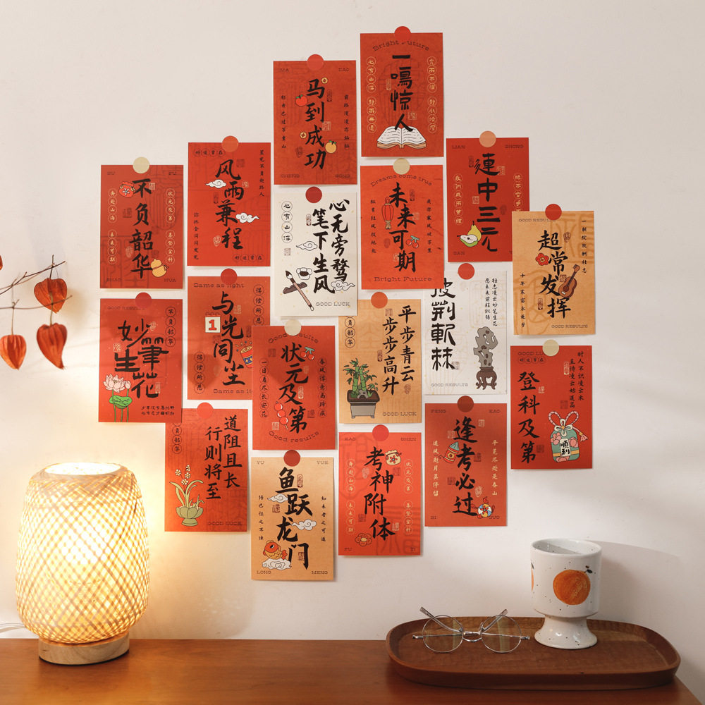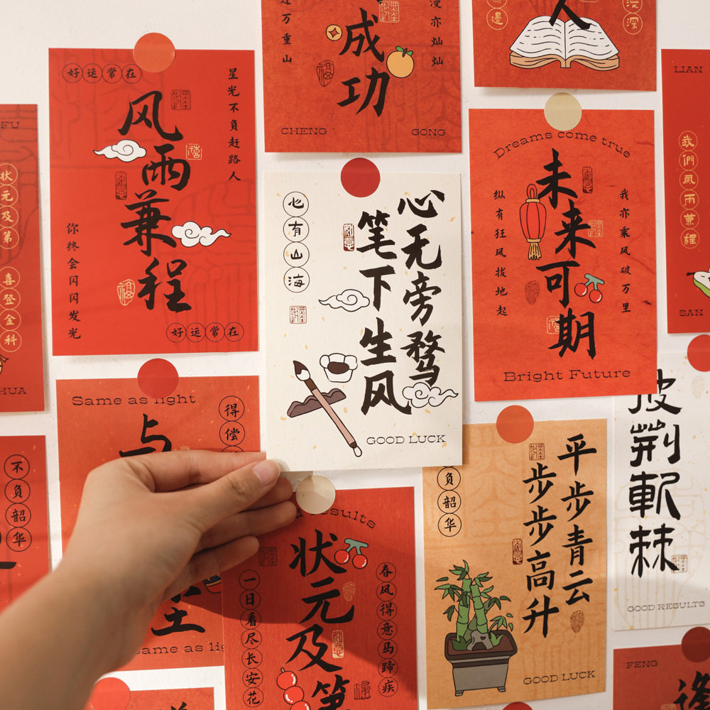 吉祥如意喜庆新年墙面装 饰祝福卡片爱心墙贴励志文字明信片贺卡