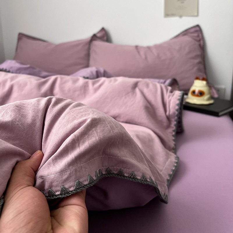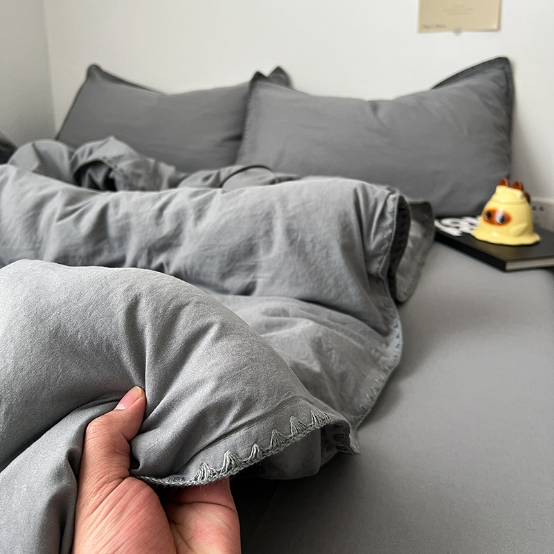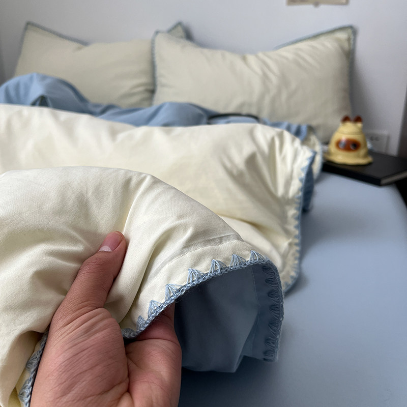 贝壳边工艺款 四件套床上用品纯棉全棉被套被罩床单宿舍三件套4