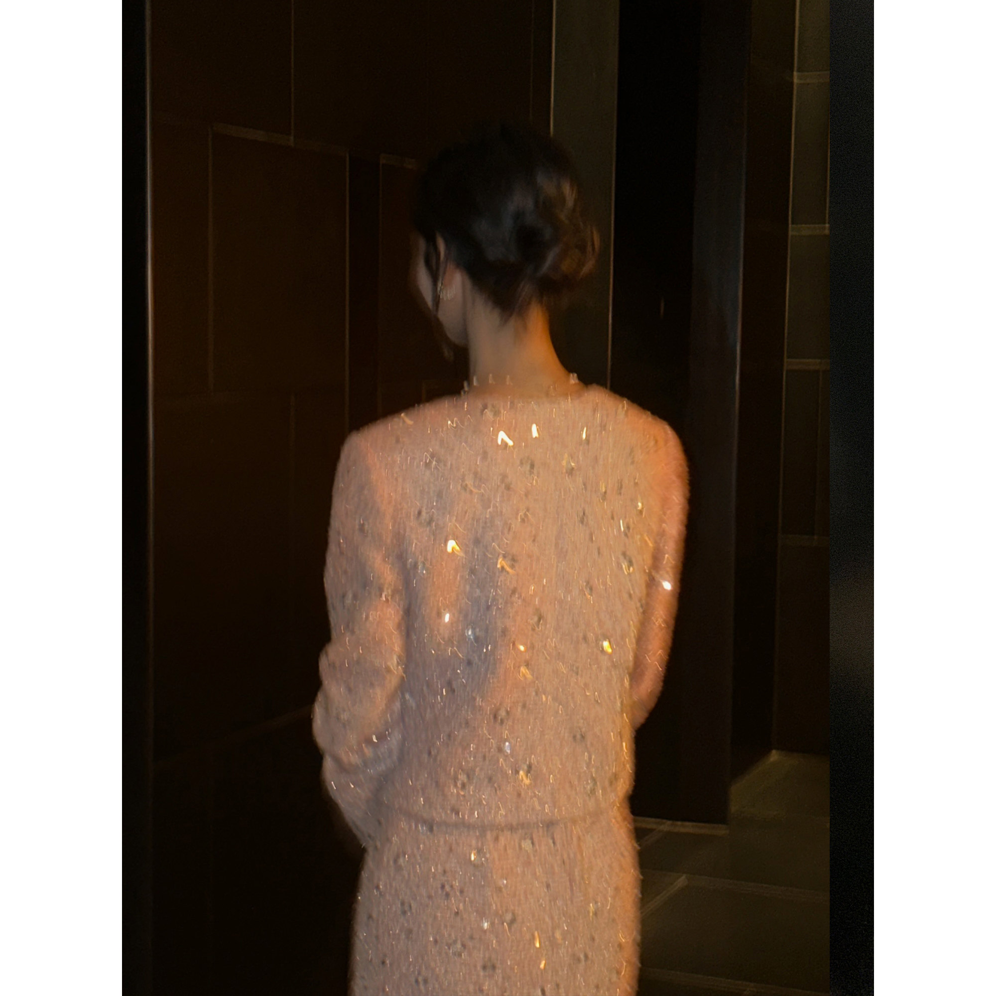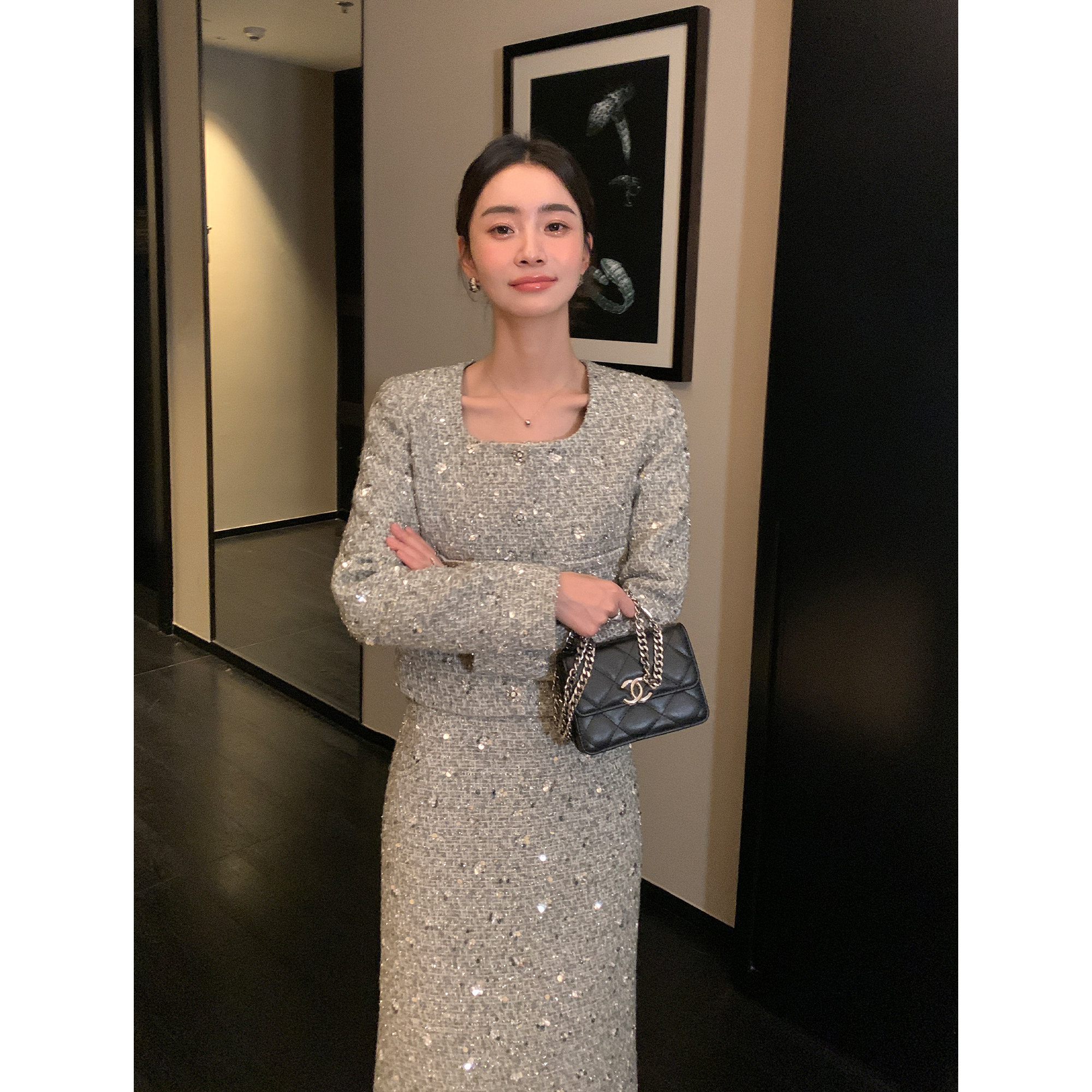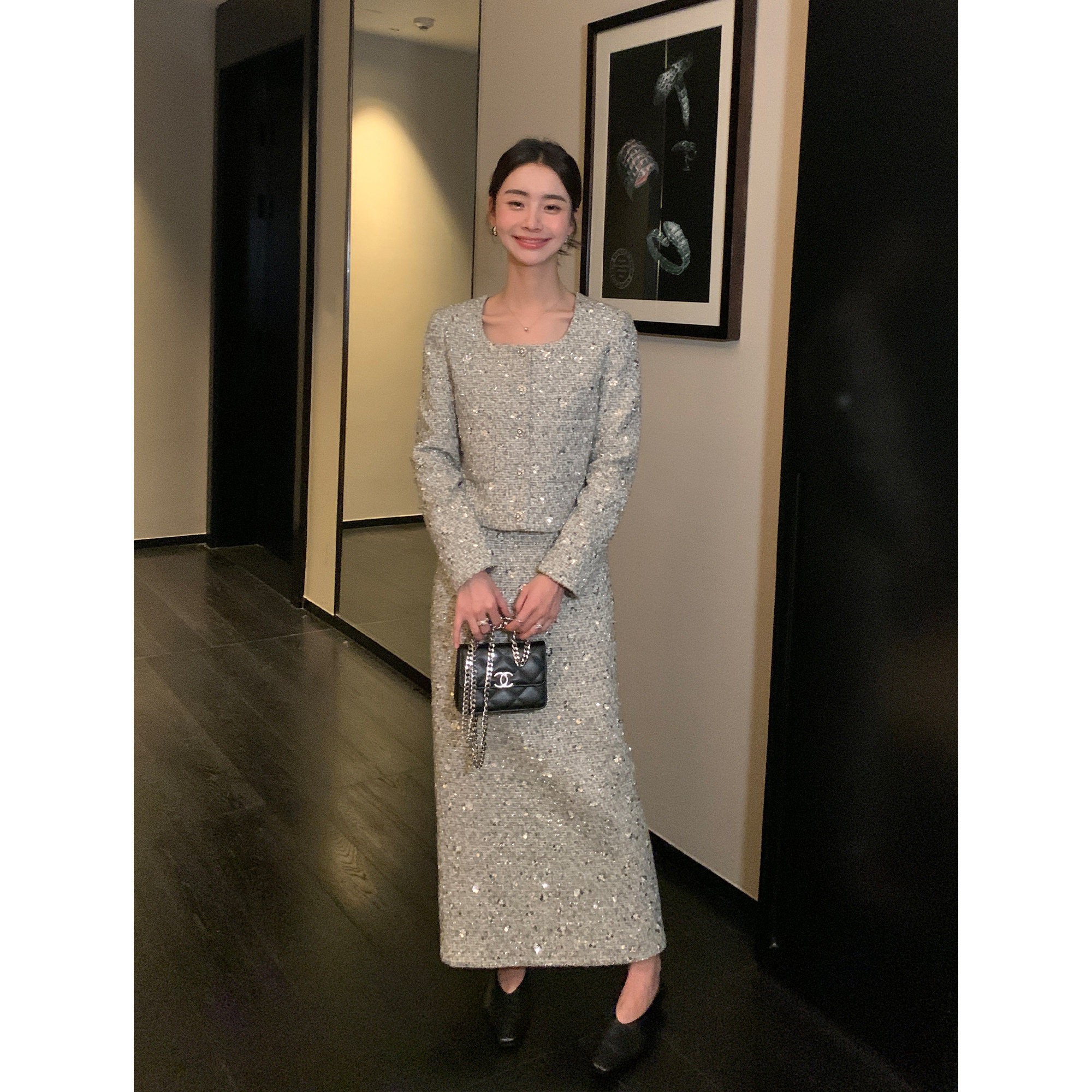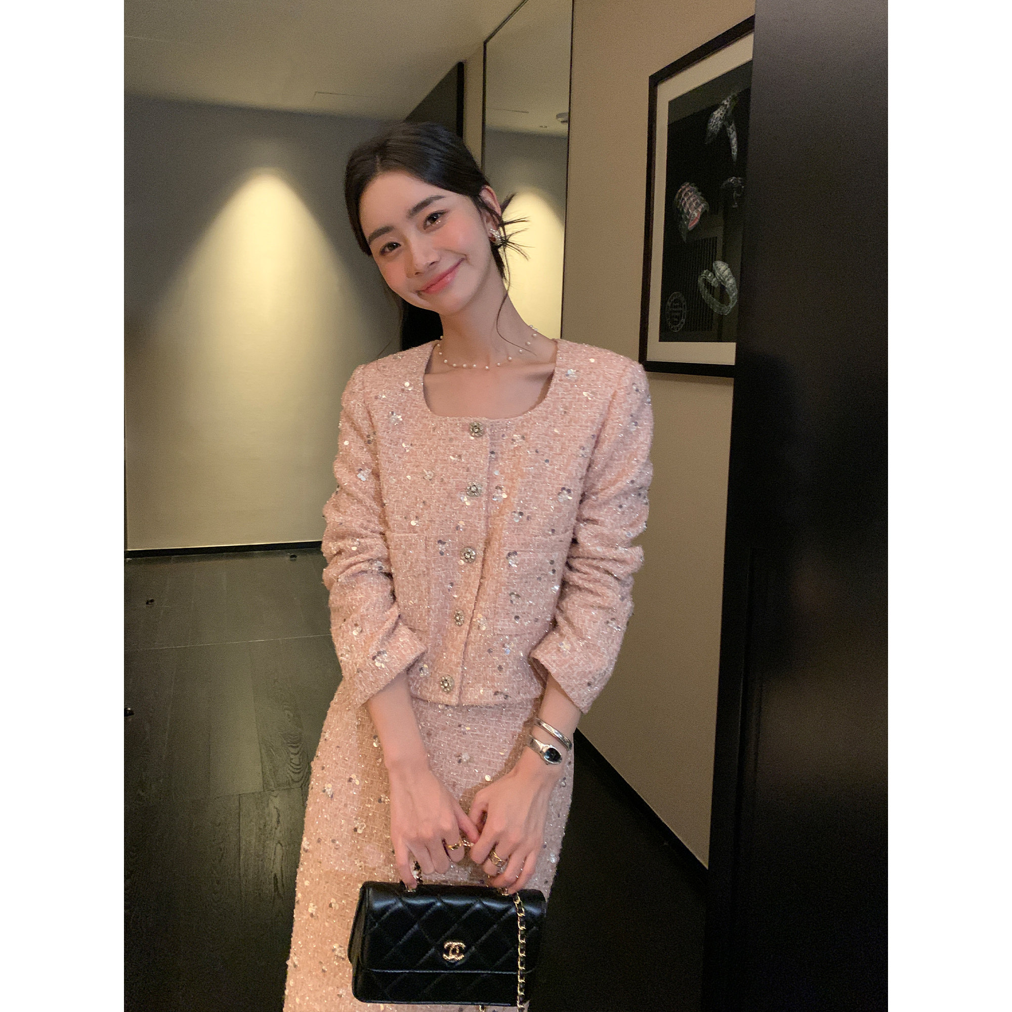 外套女珠片方领上衣 轻奢混纺粗花呢千金感小香风短款 Maven Lin