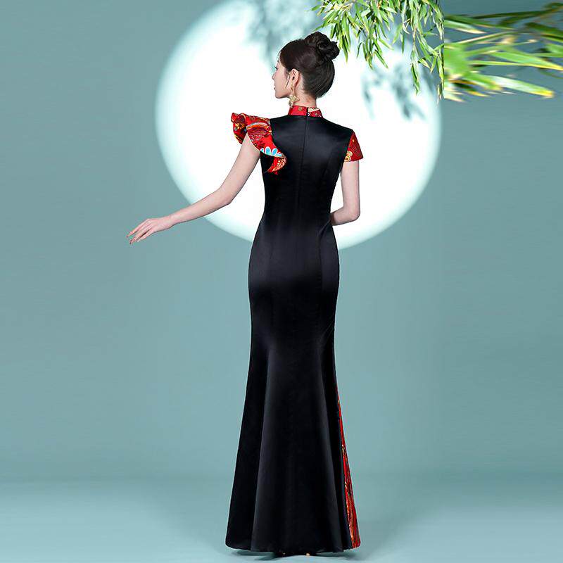 团队走秀2025新款 新中式 烫钻改良旗袍女高级感气质优雅长款 明星款