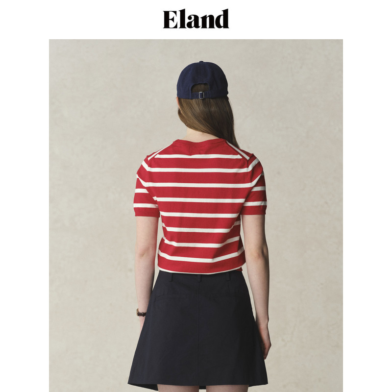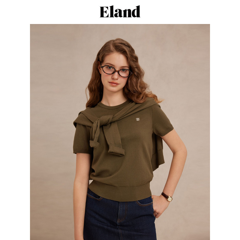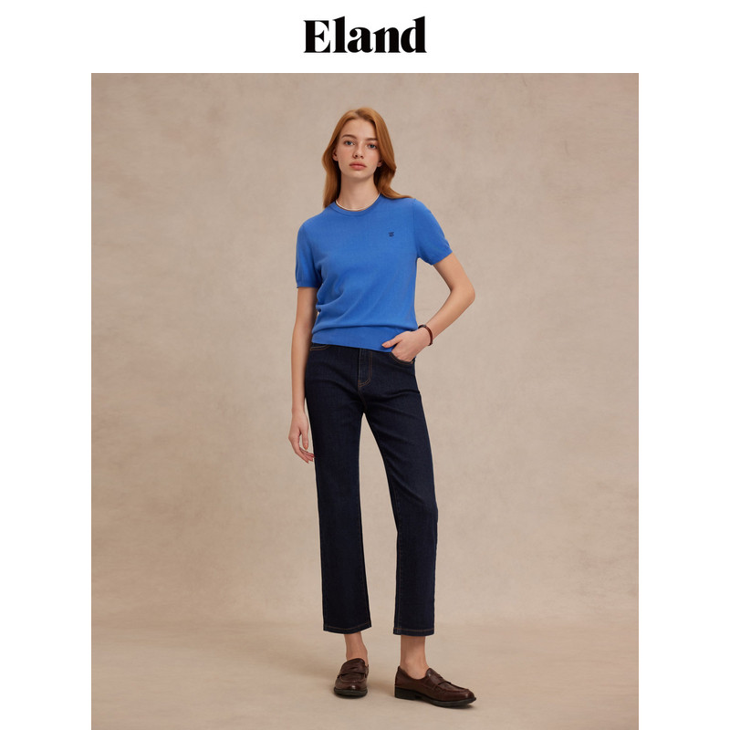 短袖 Eland衣恋针织T恤女罗纹圆领薄款 匹马 上衣夏季 经典