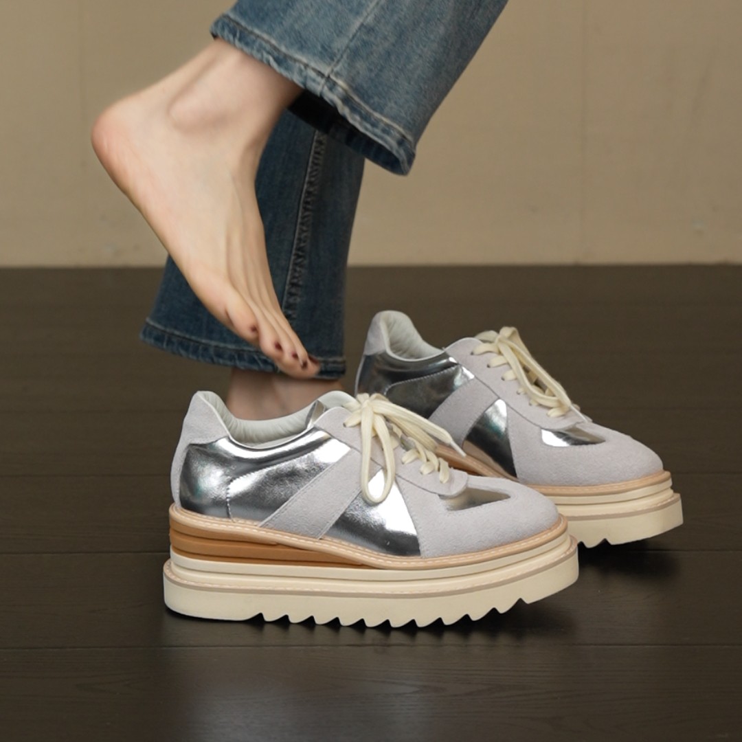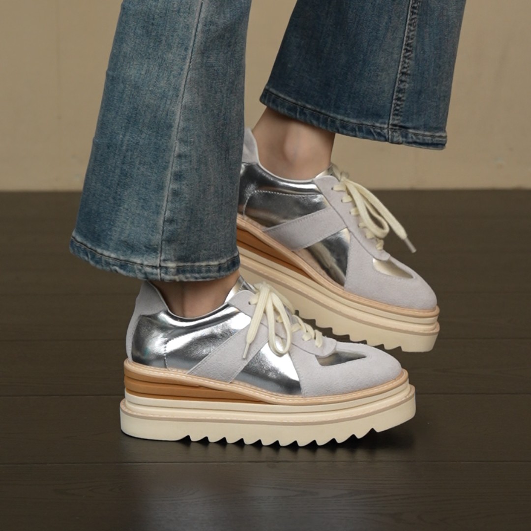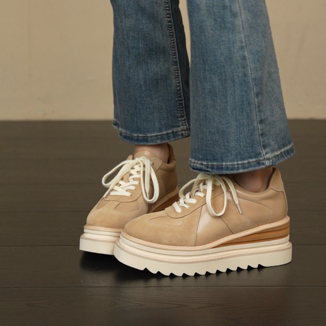 复古圆头拼色系带单鞋 6cm坡跟厚底休闲百搭乐福鞋 NNMISS·34