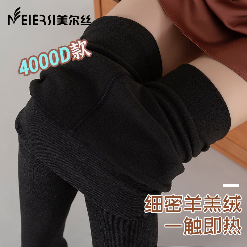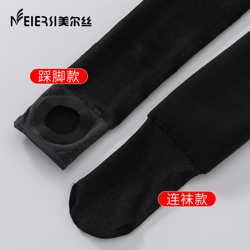 美尔丝7620棉质竖条纹打底裤 女冬加绒加厚350G保暖微压显瘦踩脚裤