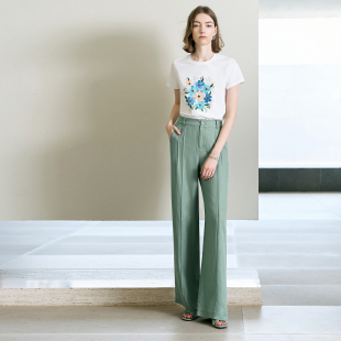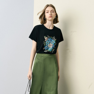 显瘦圆领通勤上衣 修身 颜域复古印花纯棉短袖 T恤女2026年早春新款