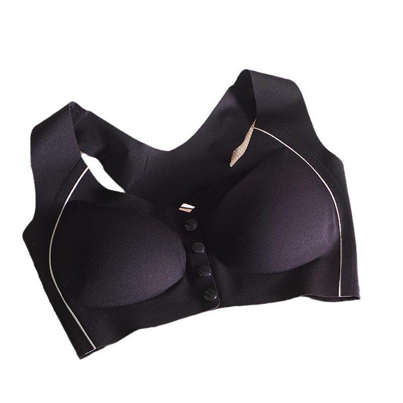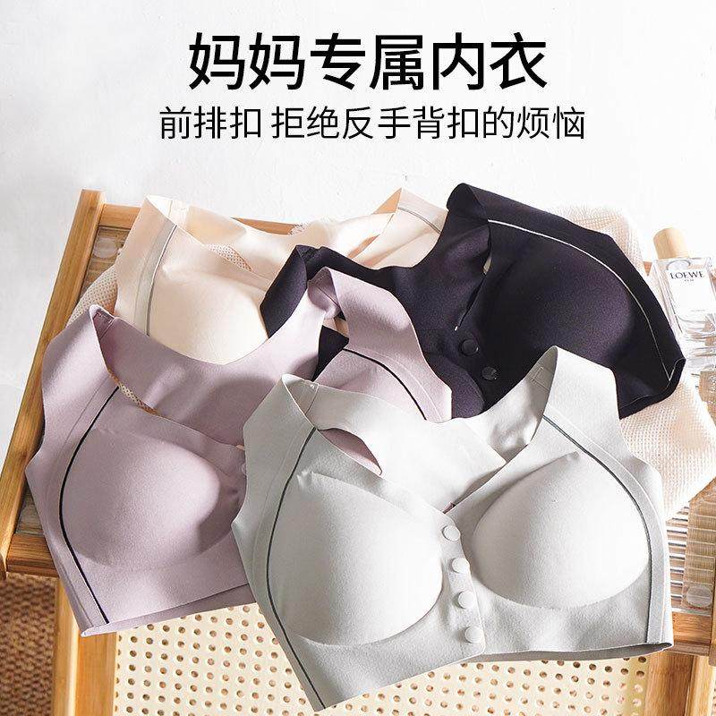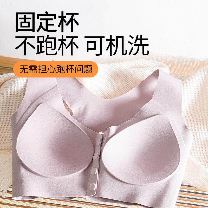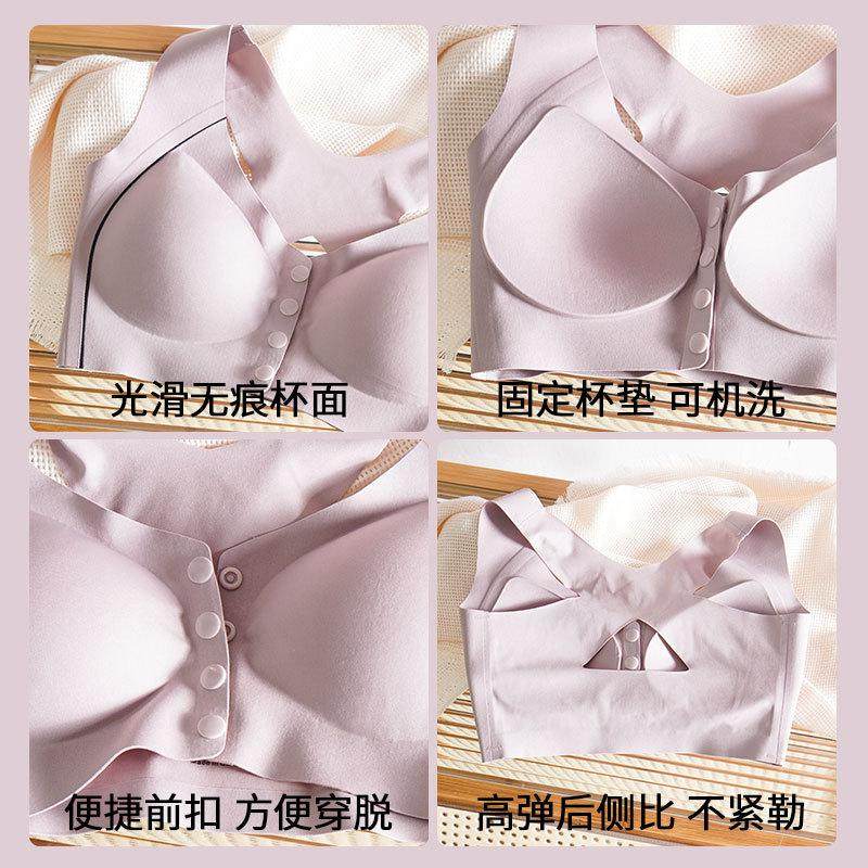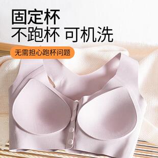 内衣薄款 美背防溜肩中老年妈妈特大码 文胸前扣交叉肩带背心一体式